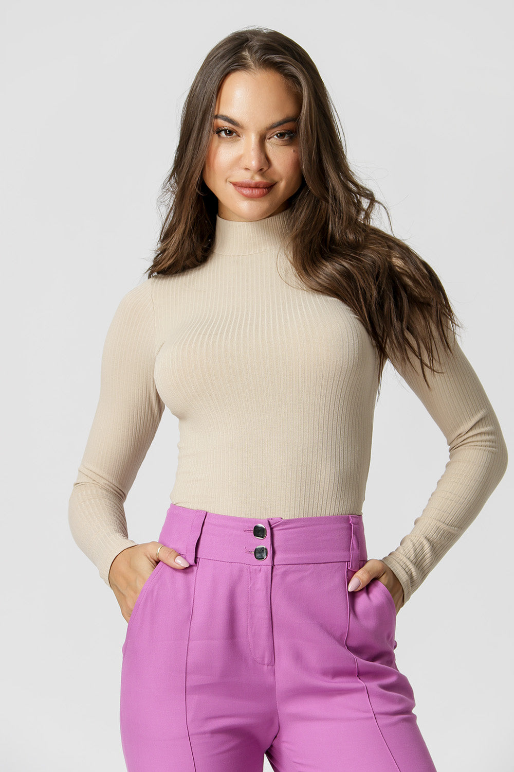 Blusa de manga larga y corte entallado, confeccionada en punto canalé. ¡Lo básico que necesitas tener!