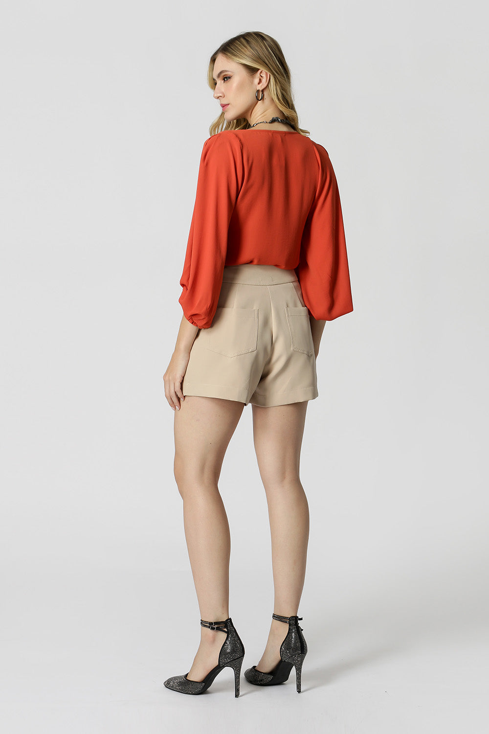 • Blusa de manga larga abullonada con collar de diamantes de imitación - TELHA 5