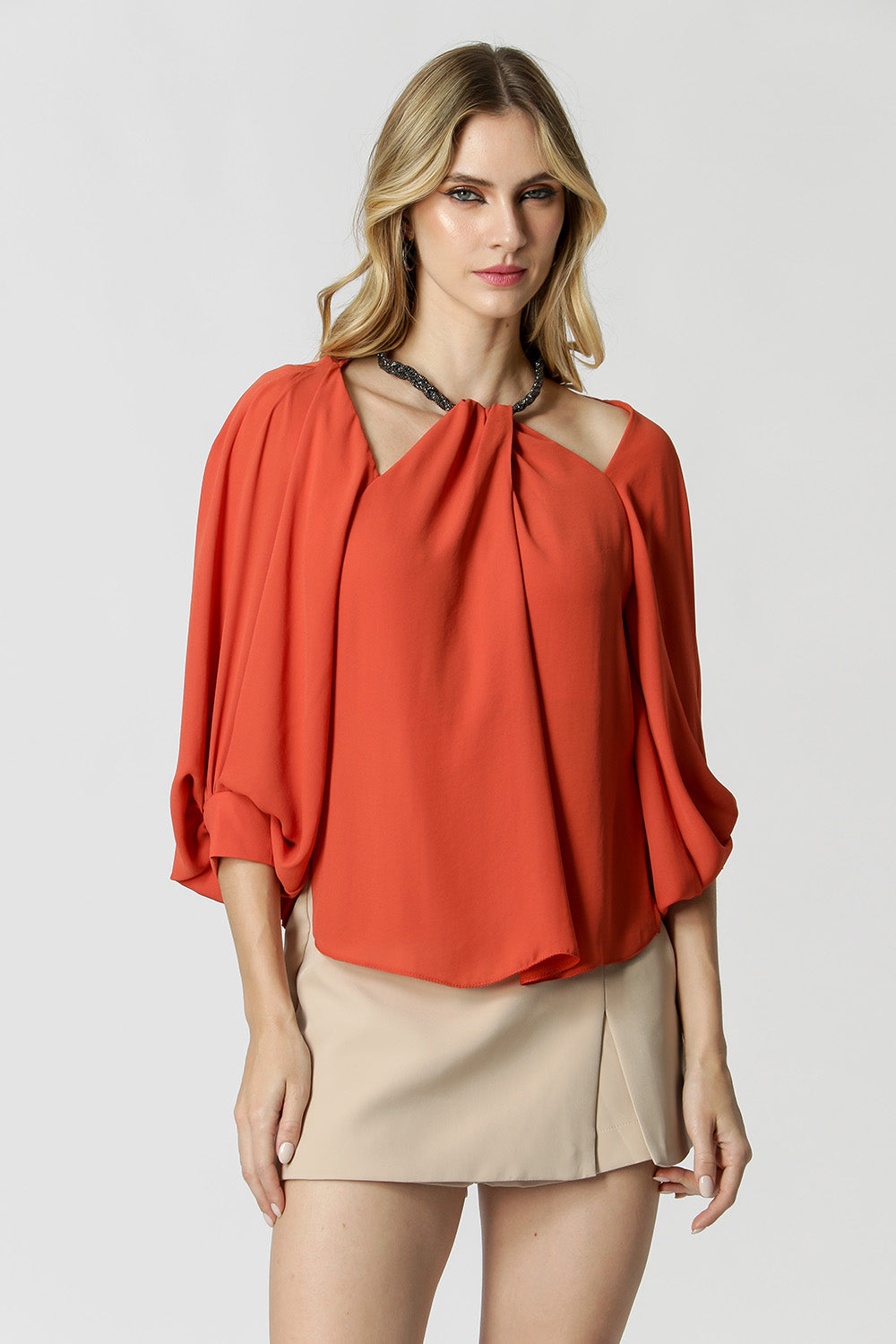 Blusa Assimétrica Com Franzido Blusa Assimétrica Com Franzido