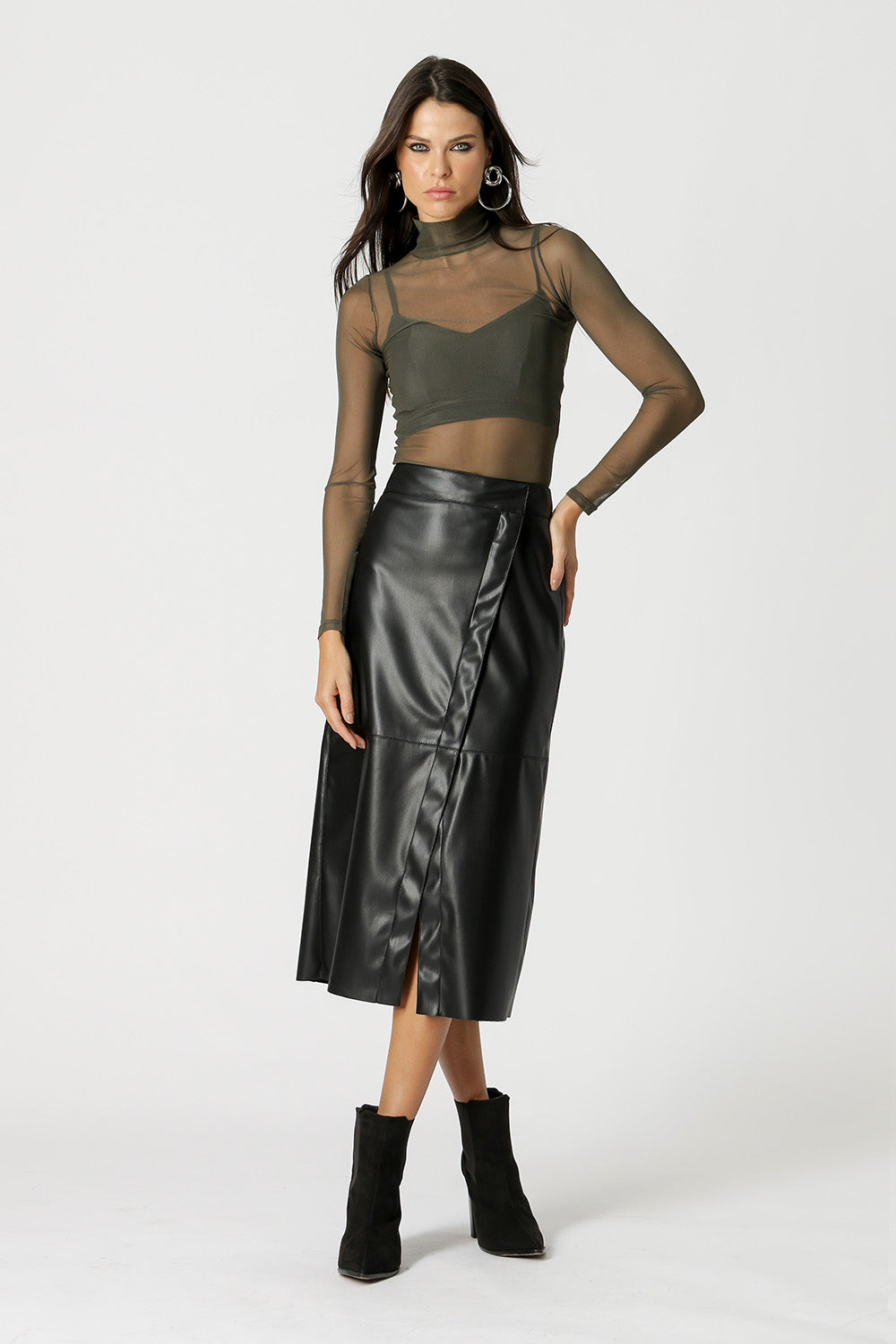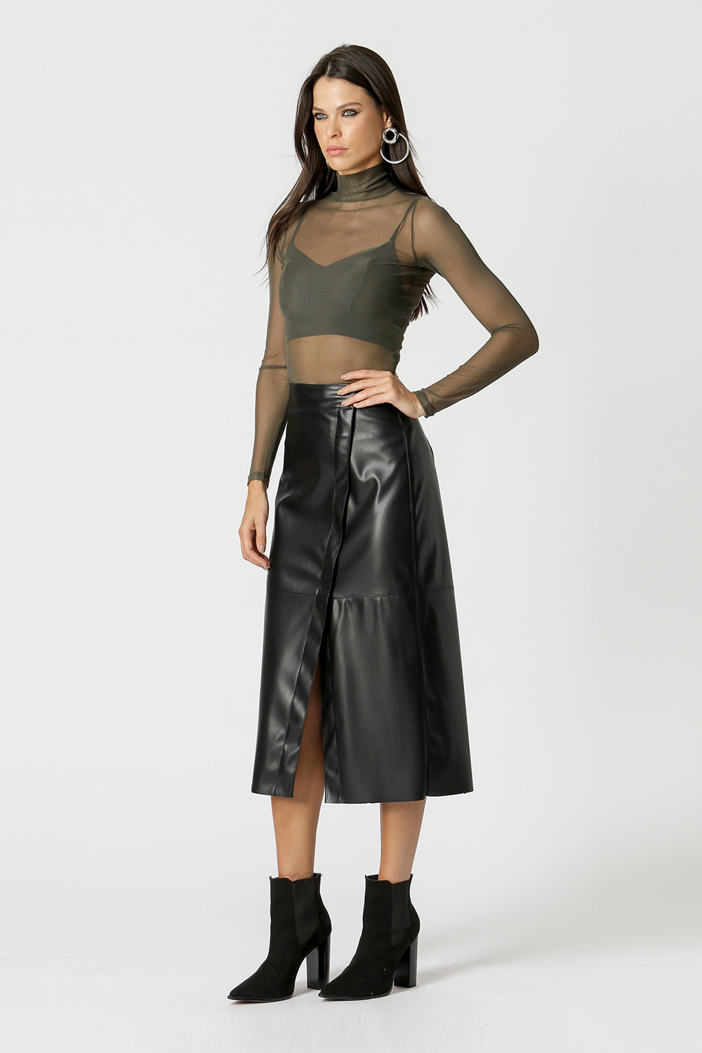 Blusa manga longa de gola alta. Confeccionada em tecido de tule. Uma peça delicada com transparência trazendo um visual estiloso e perfeito para compor com look night.