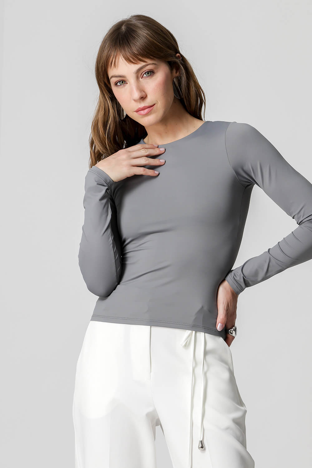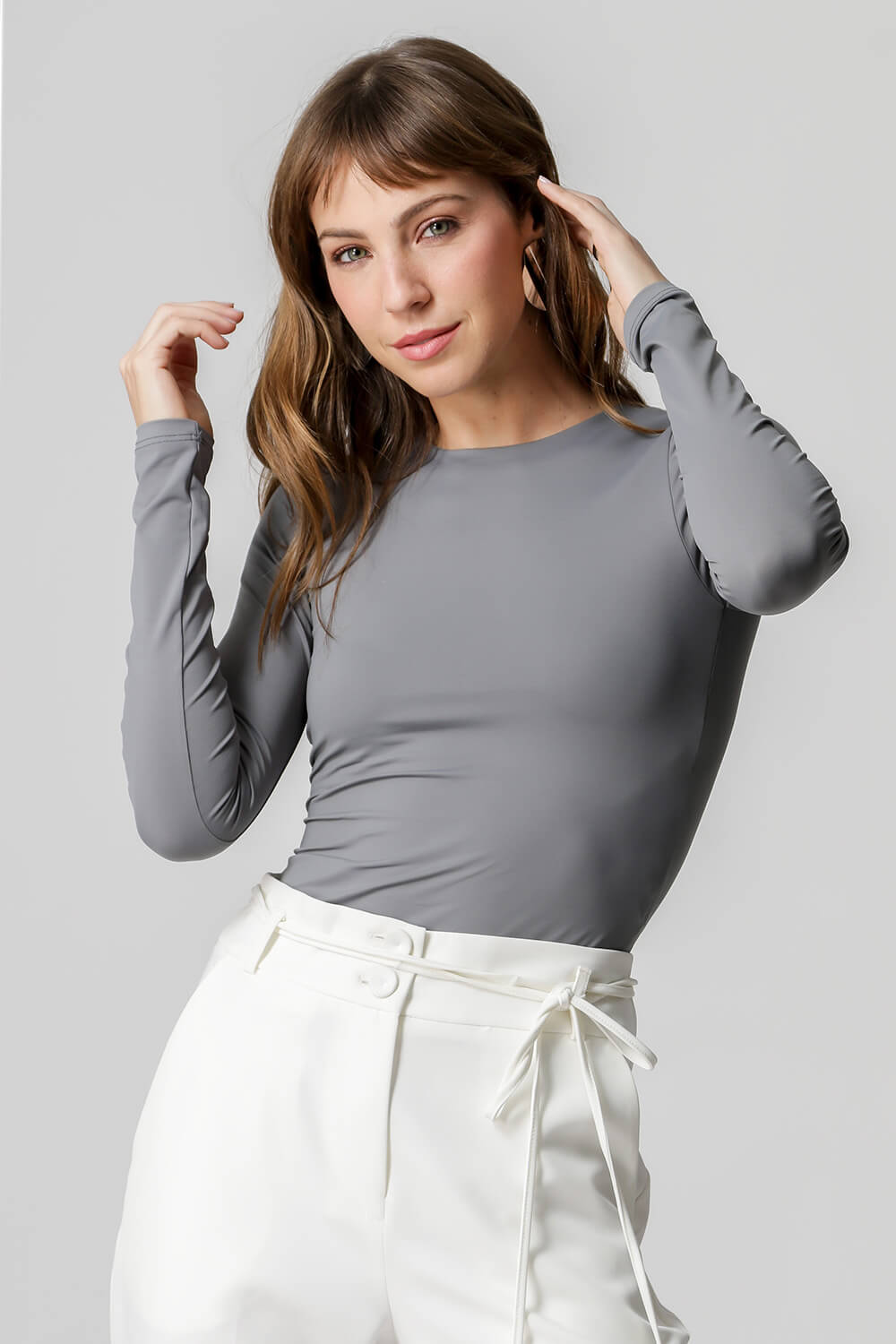 Blusa de cuello redondo y manga larga. Pieza básica y sencilla para crear un look diario.