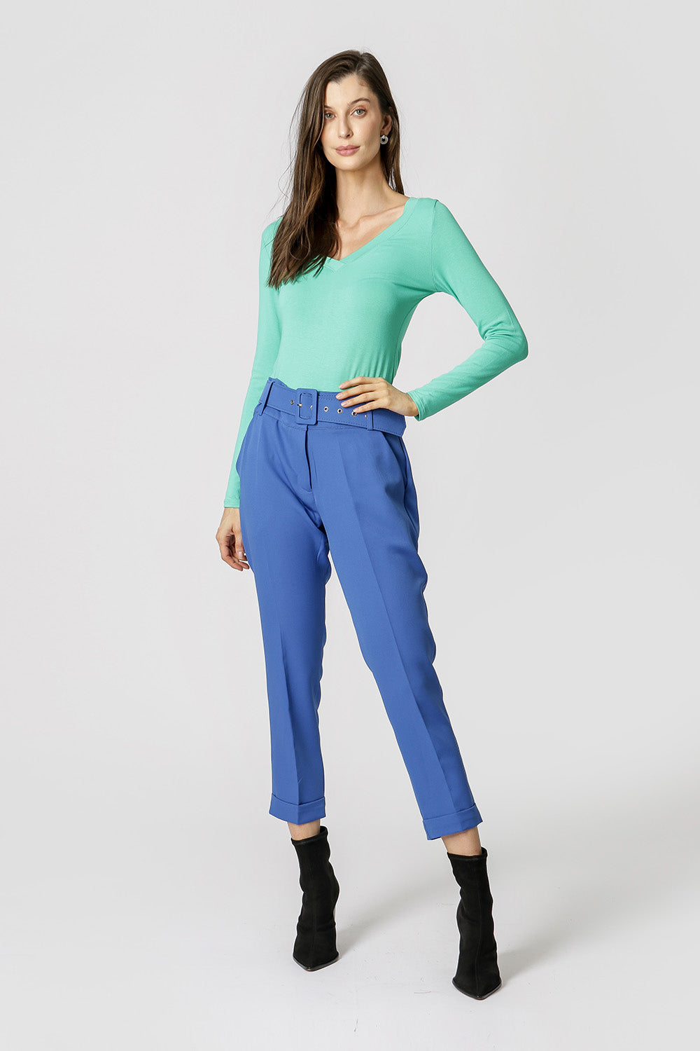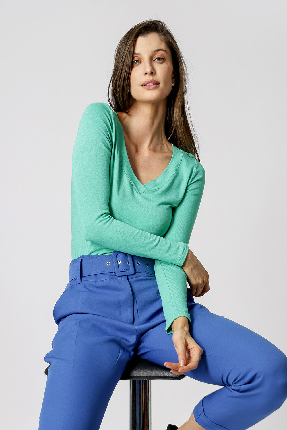 Blusa con escote en pico y manga larga. Una prenda básica de armario, ideal para crear looks con capas.