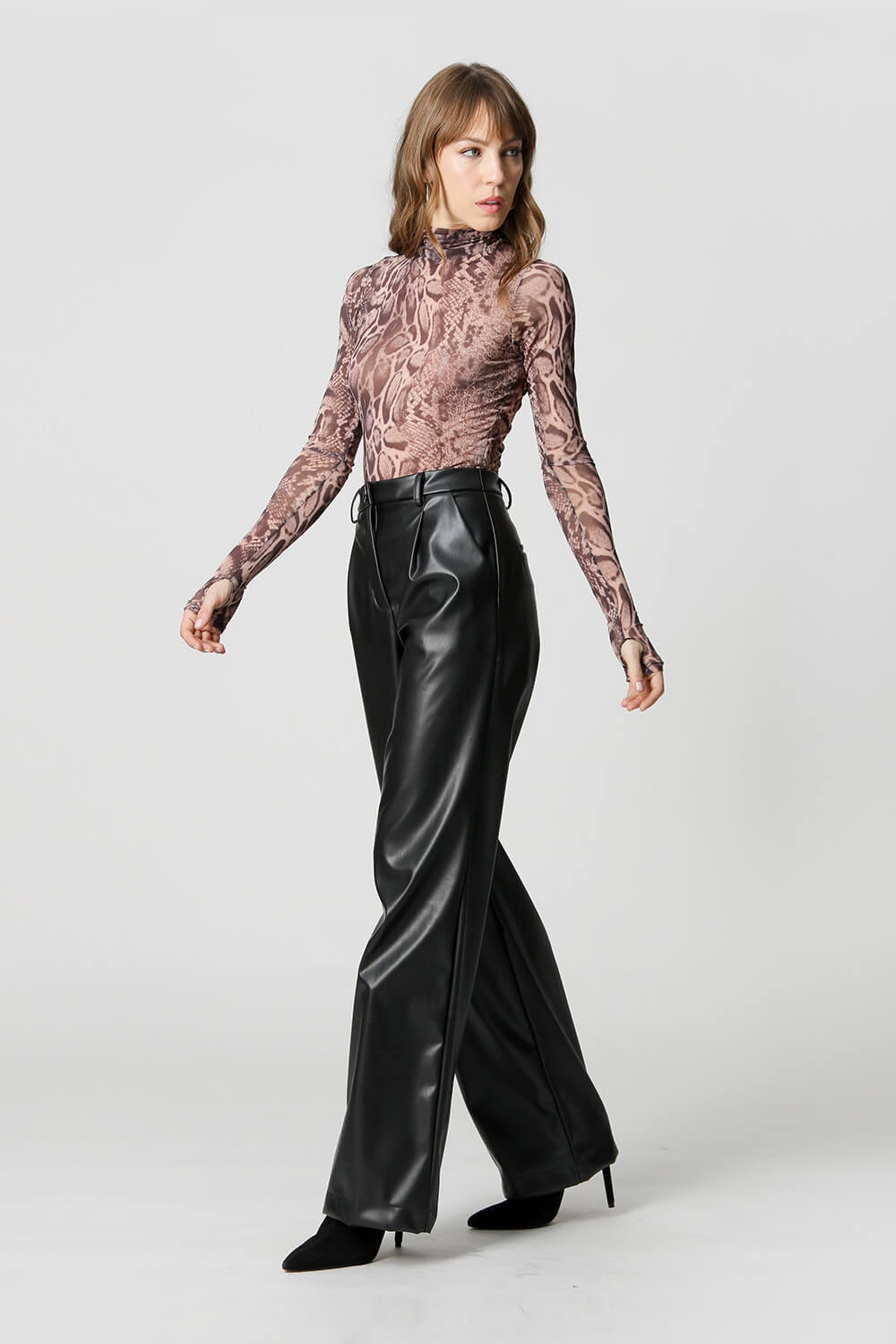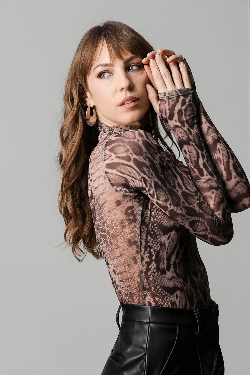 Blusa de cuello fruncido y manga larga con detalle de abertura en la manga. Fabricado en tejido de tul estampado. Un modelo de corte entallado que realza la silueta femenina, perfecto para crear un look de noche.