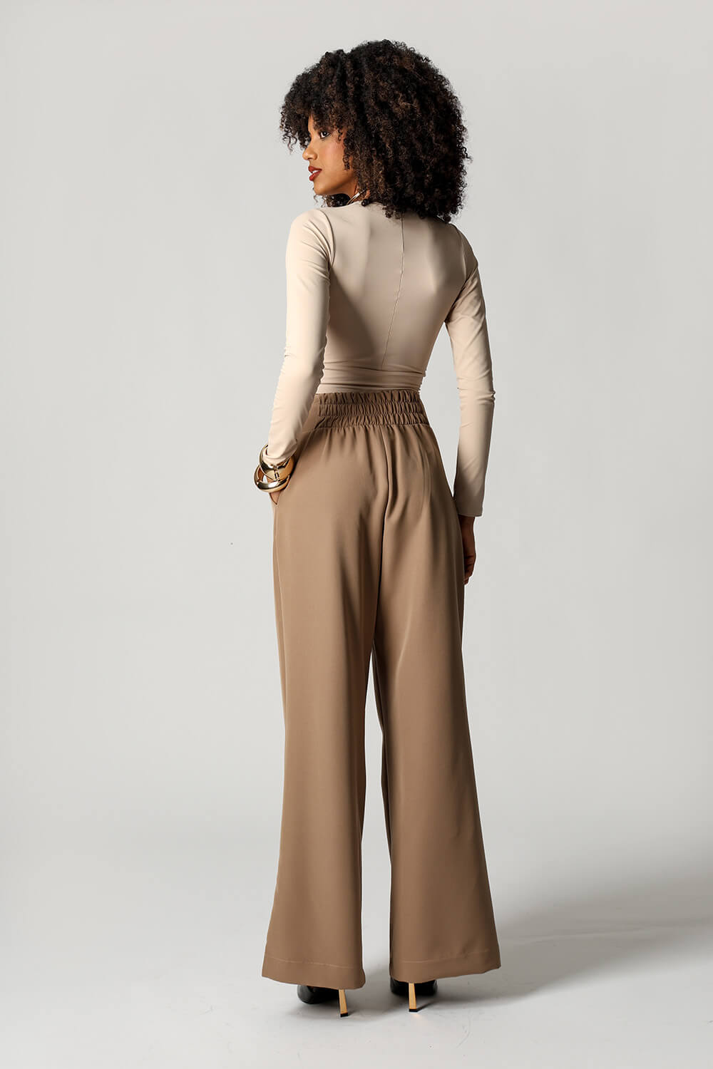 Blusa en tejido de punto Amni, largo crop, manga larga con detalle de giro en la parte delantera y escote en pico. Pieza ideal para looks modernos y cool.