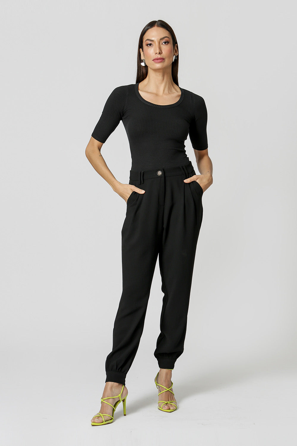 Blusa con escote que realza el busto, mangas midi y corte que se ajusta mejor al cuerpo. Realizado en punto acanalado. ¡Lo básico para que lo uses de lunes a lunes!