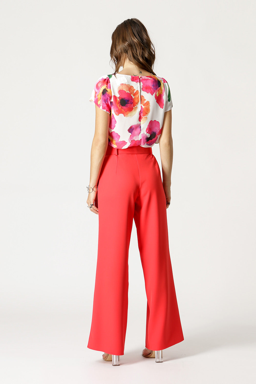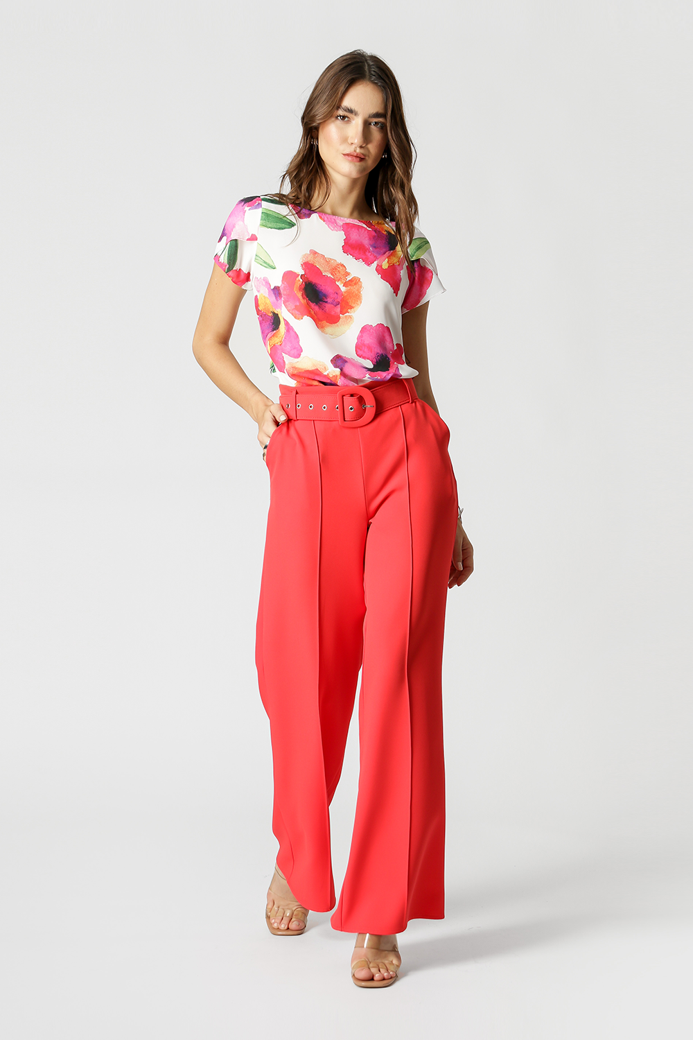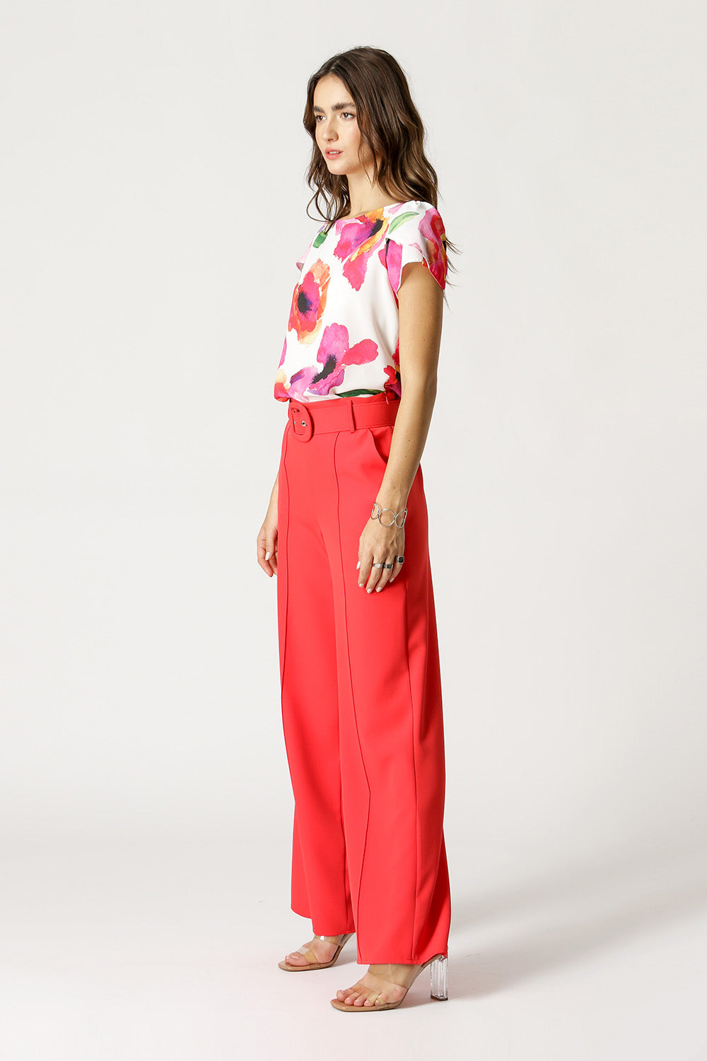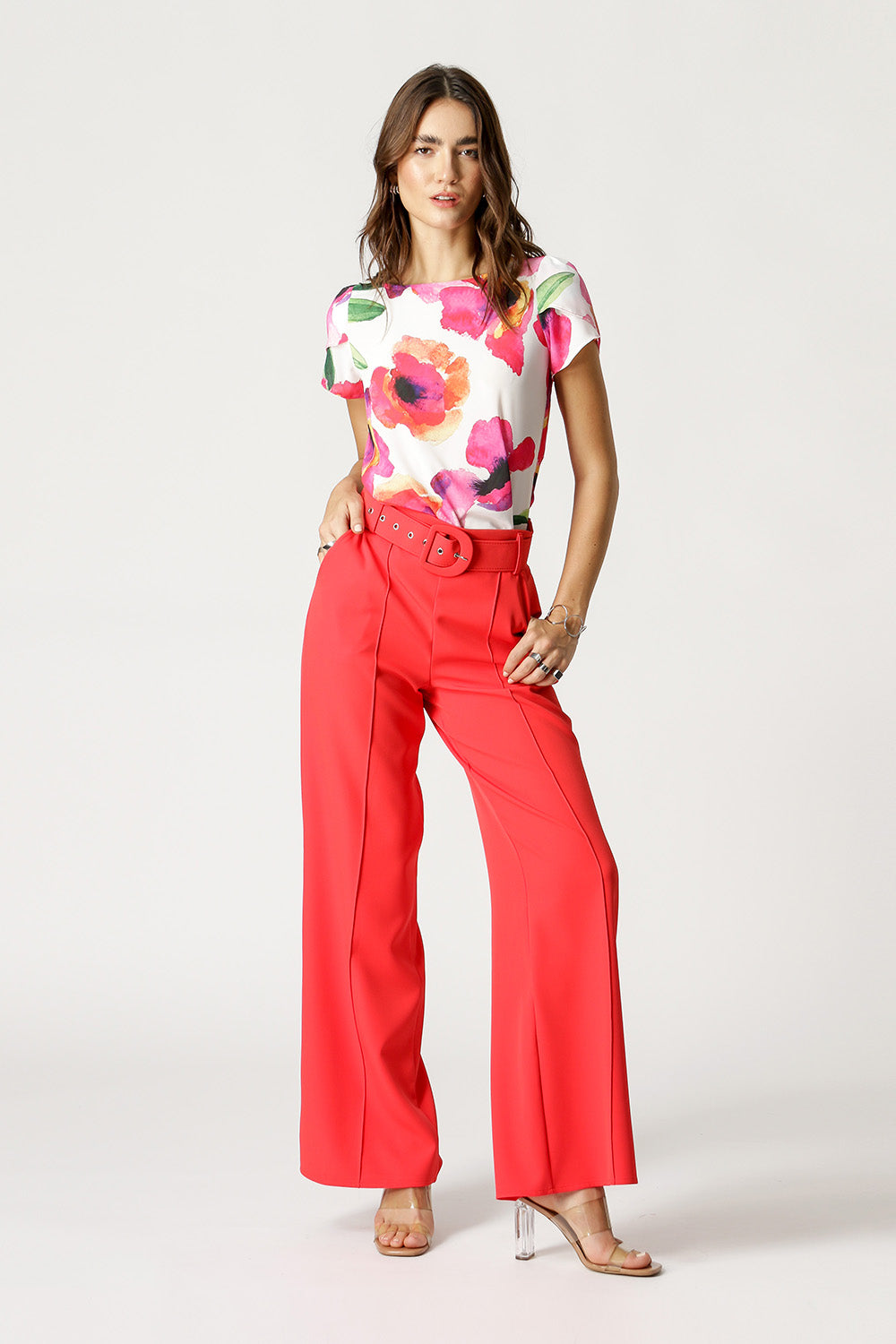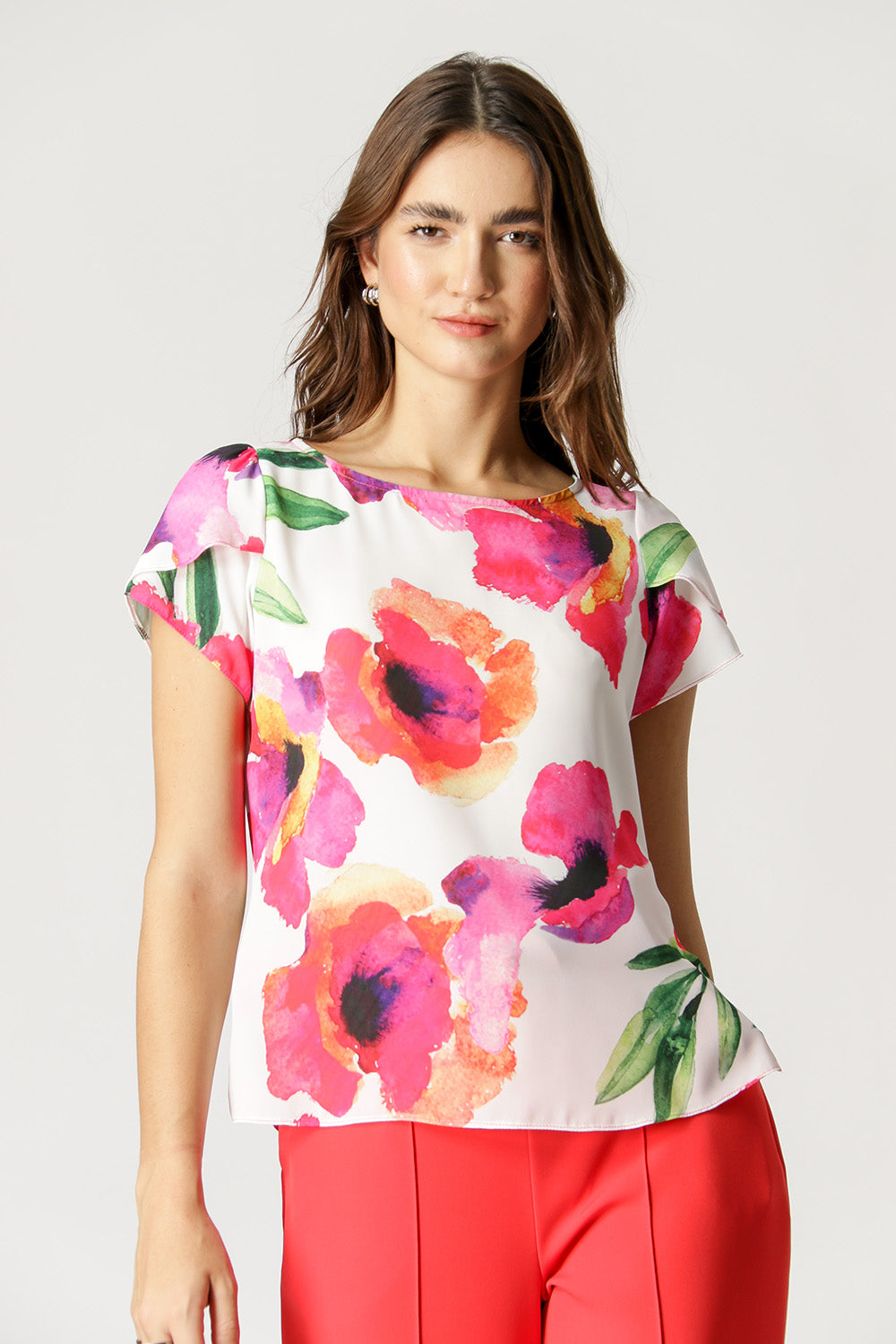 Blusa confeccionada en crepe fluido estampado. La pieza tiene mangas cortas, con detalle cruzado. Corte holgado, abertura trasera con botón. Ideal para un look de trabajo tal como a ti te gusta.