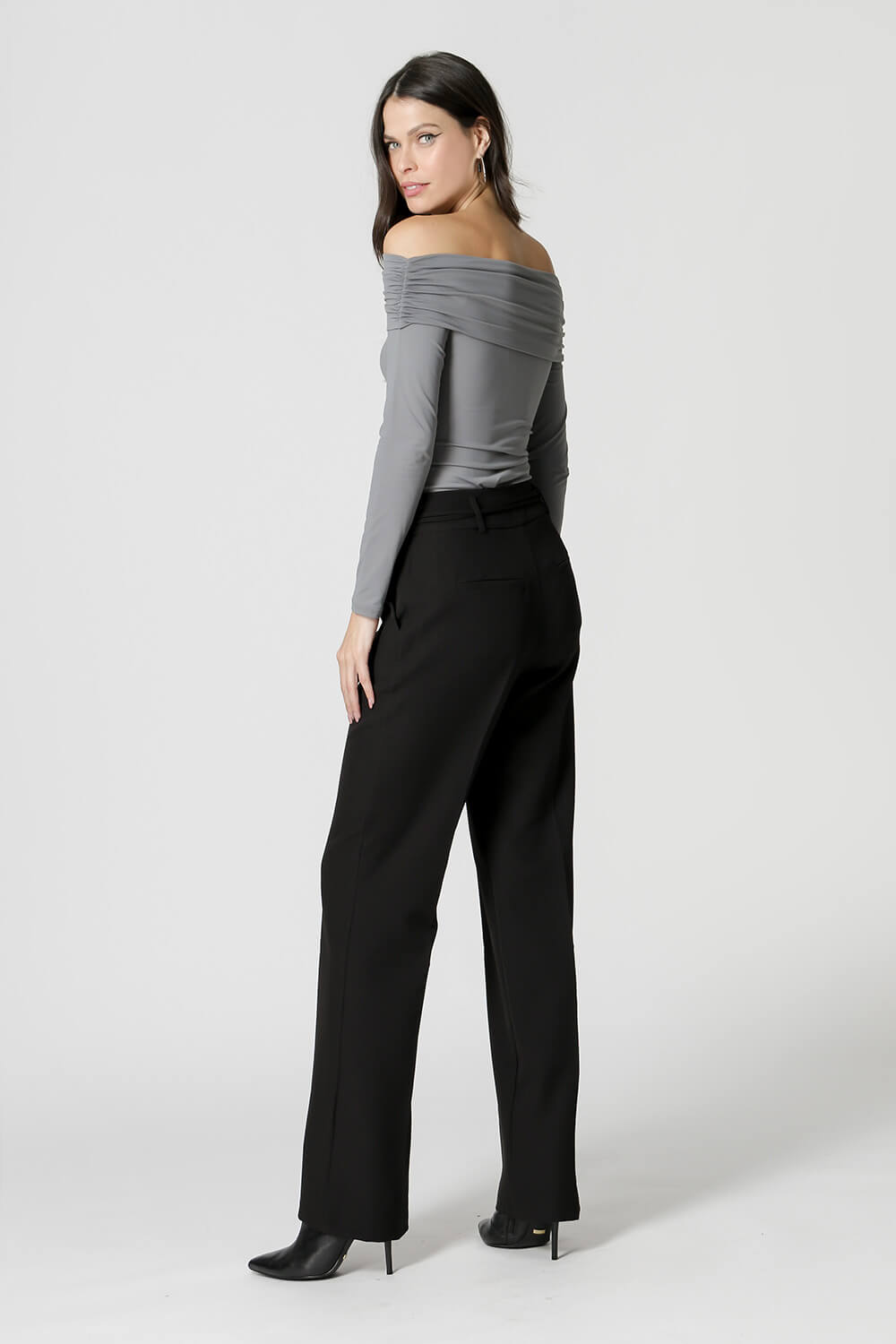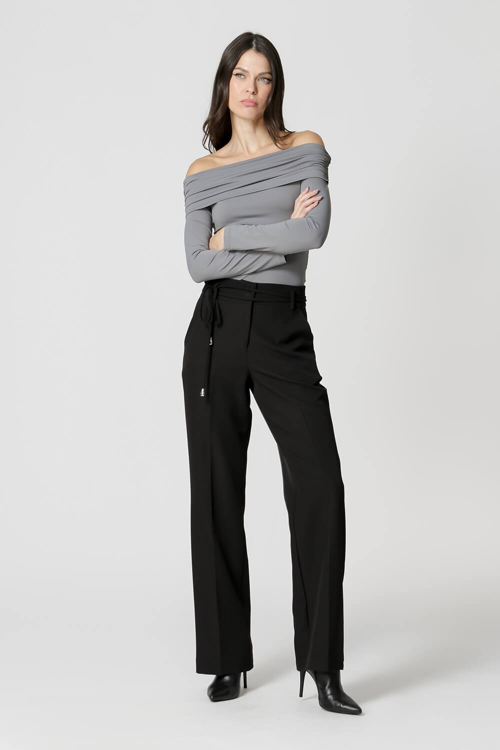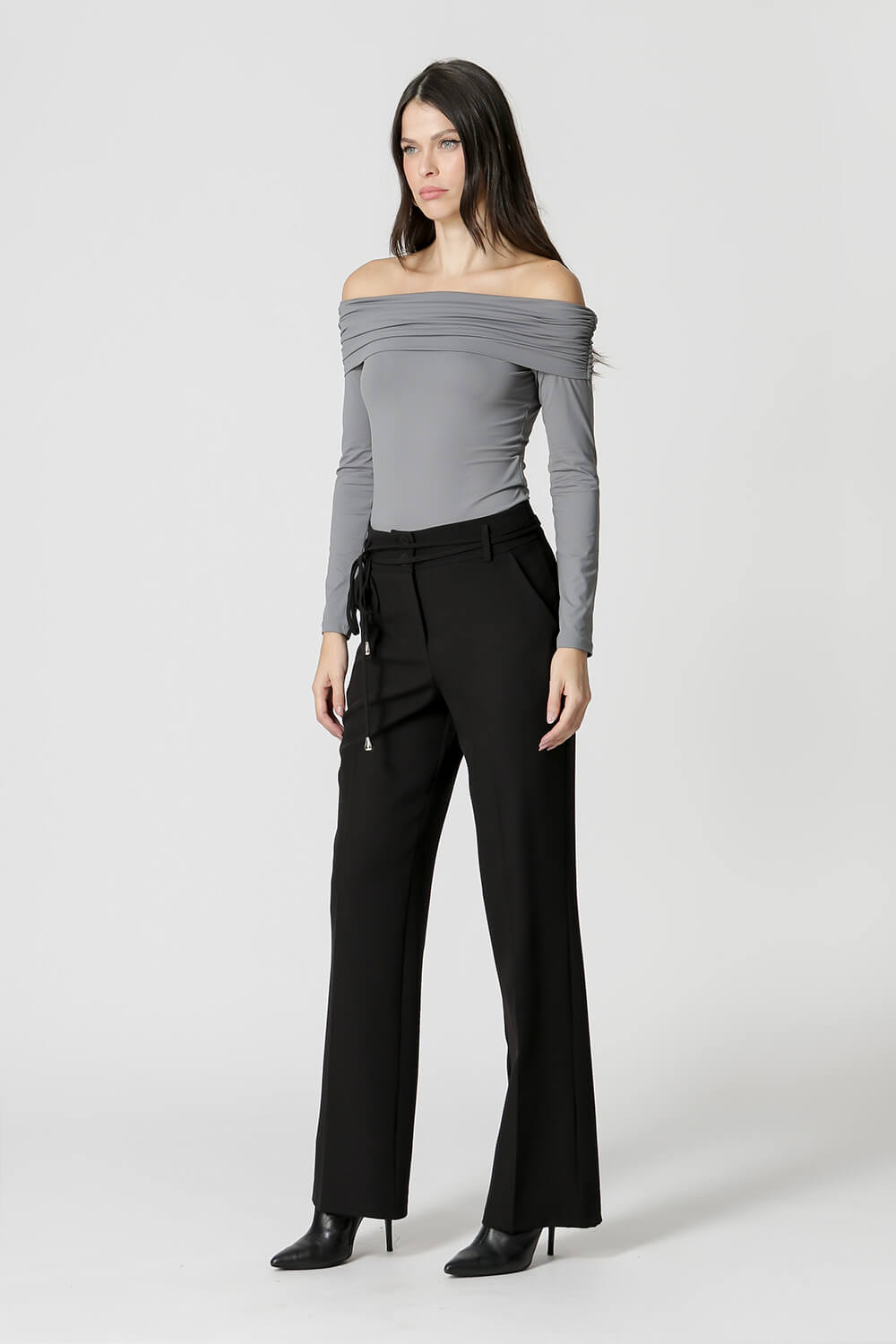 Blusa con hombros descubiertos. Confeccionado en tejido amni, ofrece un diseño ajustado que realza la silueta femenina y es perfecto para crear looks casuales.