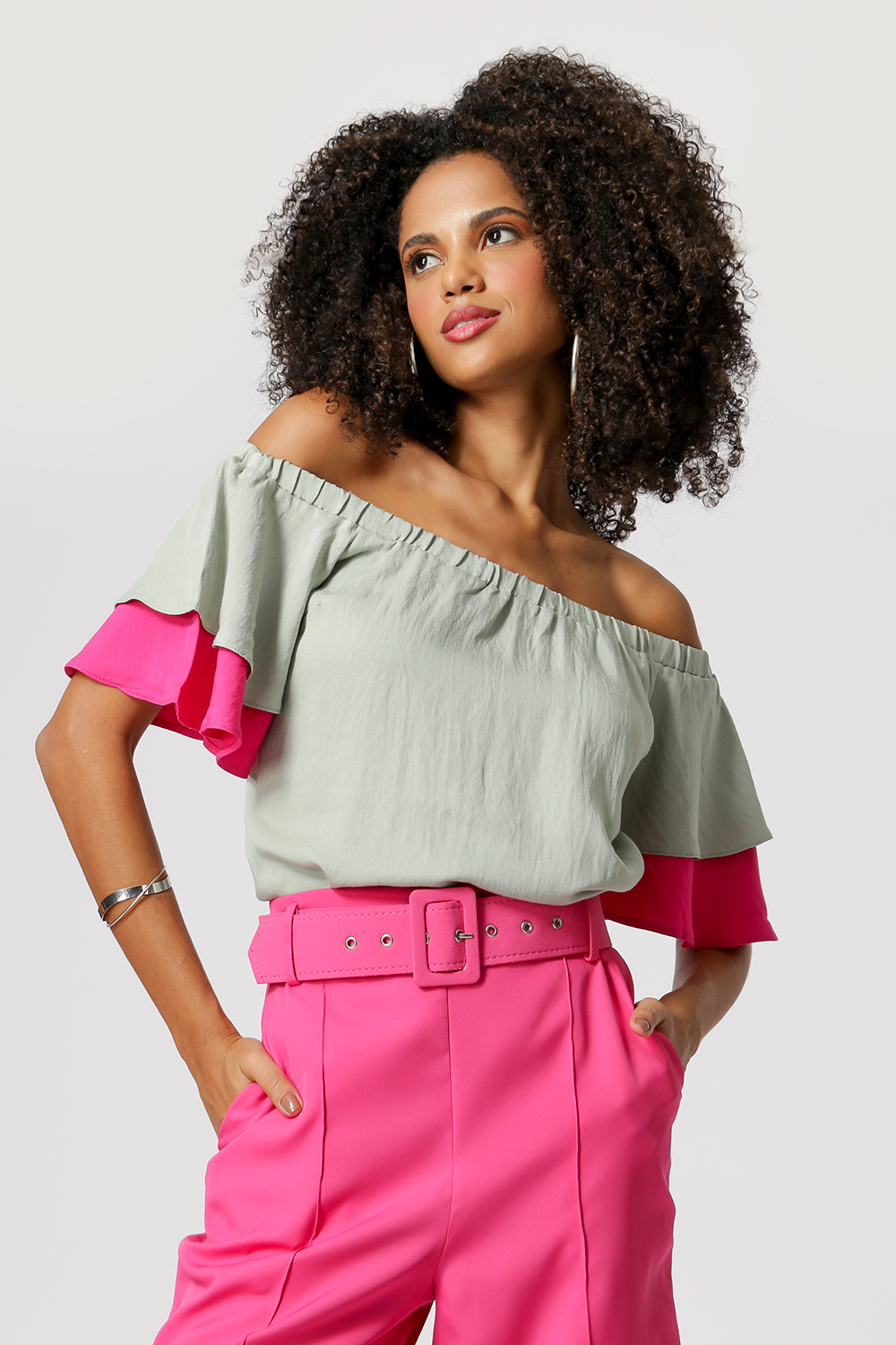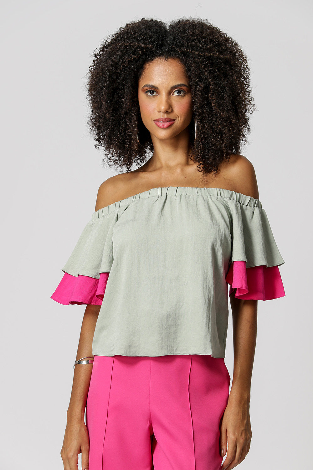 Blusa con hombros descubiertos y volantes - MINERAL