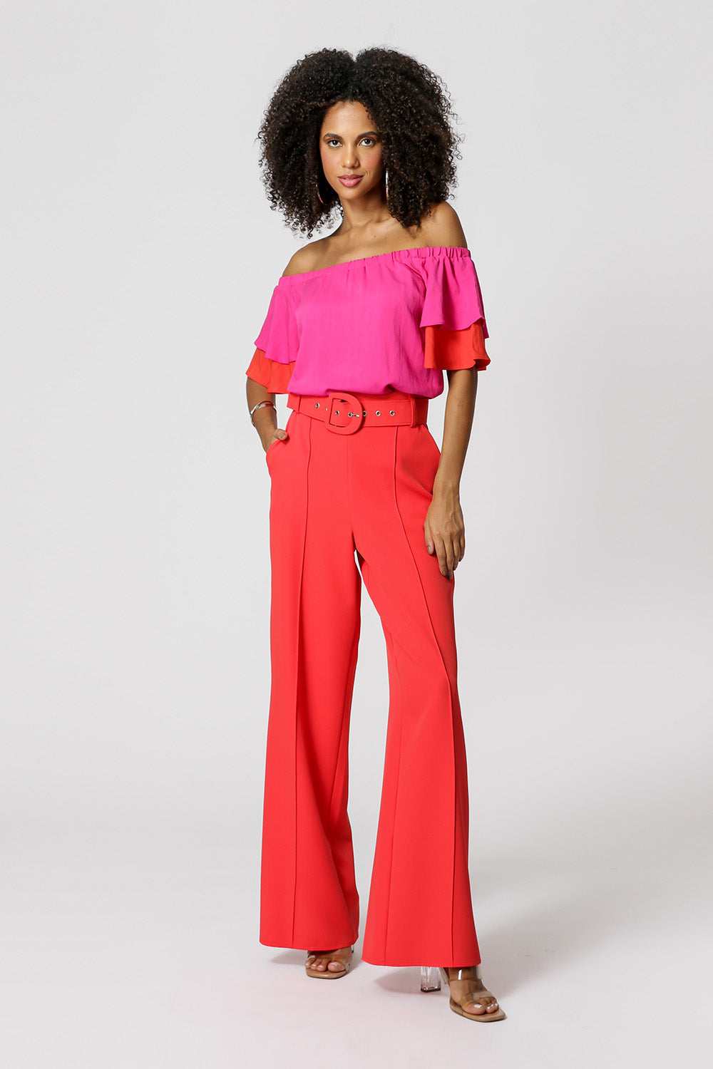 Blusa en tejido ligero y fluido de viscosa, con escote hombro descubierto con elástico y un precioso volante en la manga.