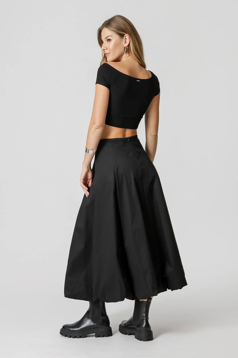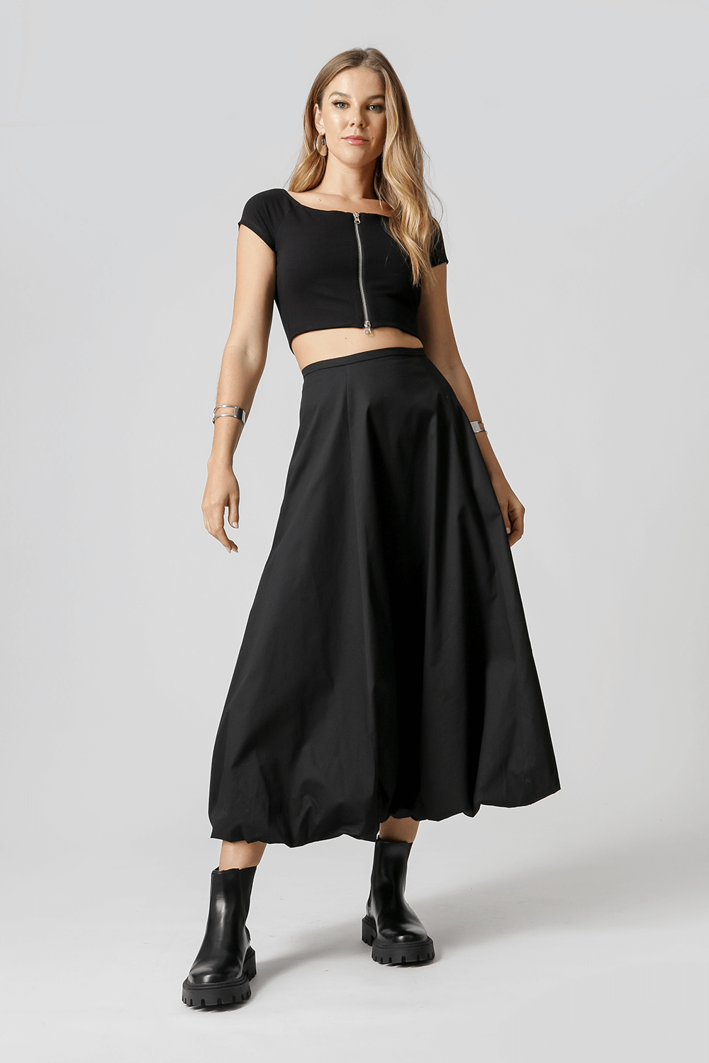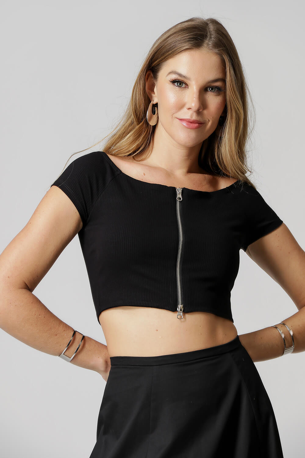Blusa con hombros descubiertos y cremallera. Una pieza que realza la silueta femenina y es perfecta para crear looks casual.