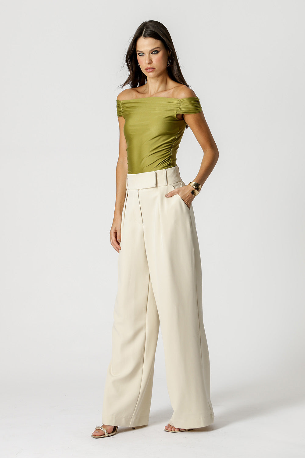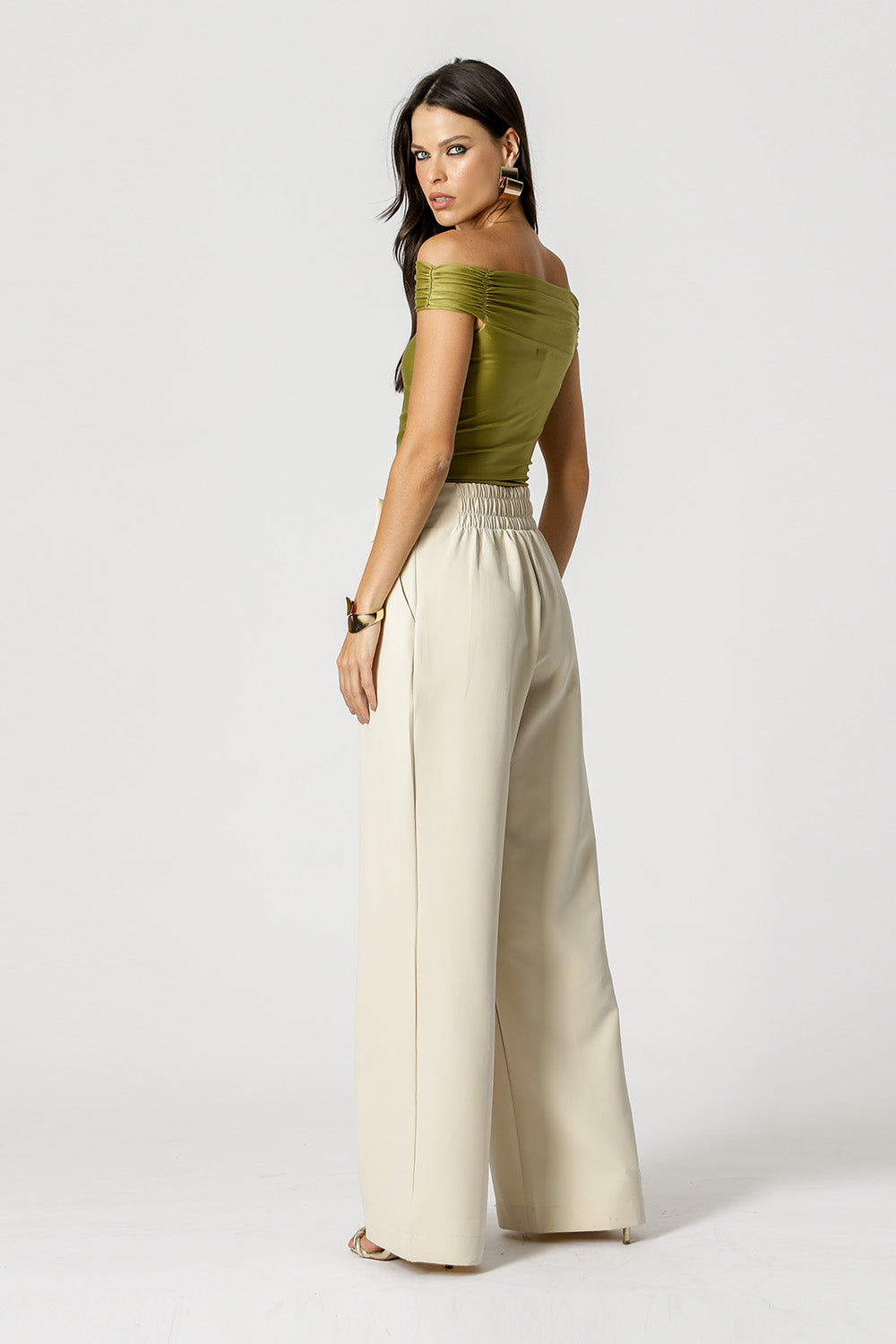 • Blusa drapeada con hombros descubiertos - OLIVA