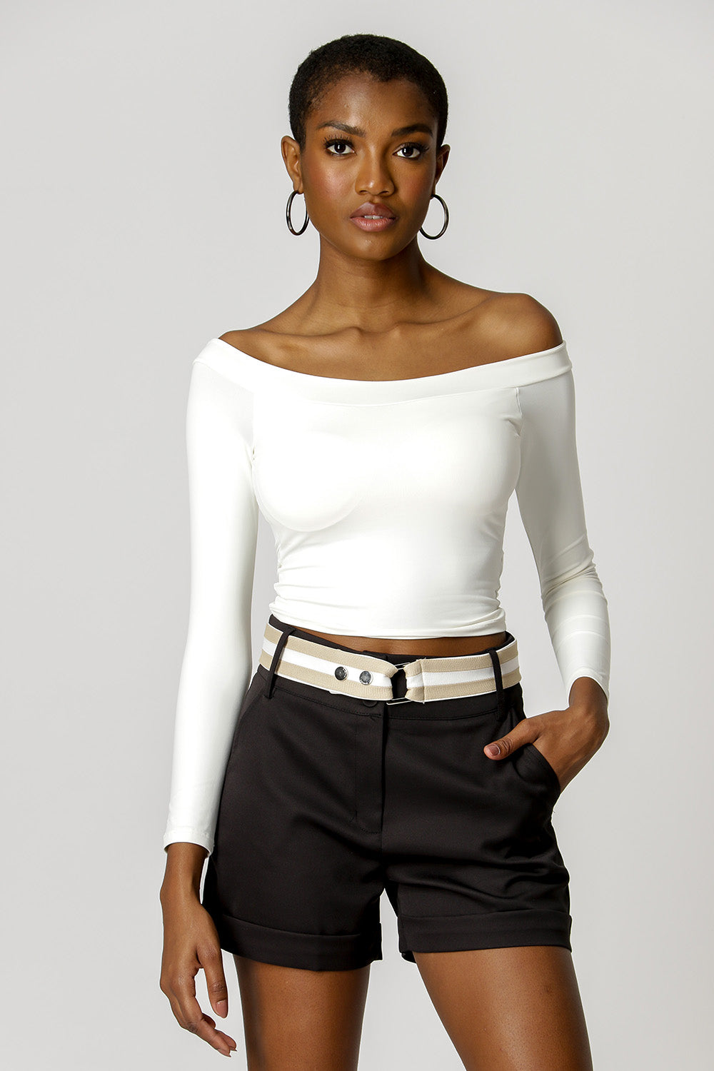 Blusa de manga larga con hombros descubiertos. Fabricado con tejido de malla amni. Una pieza básica y práctica, perfecta para crear distintos looks casuales.