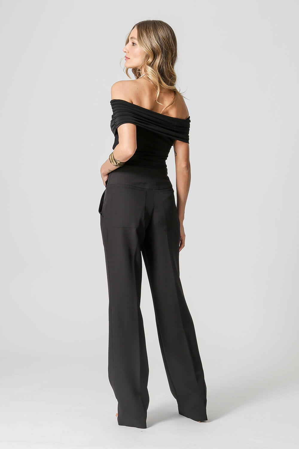 Blusa con hombros descubiertos. Fabricado en tejido ity que realza la silueta femenina y es perfecto para crear looks casuales.
