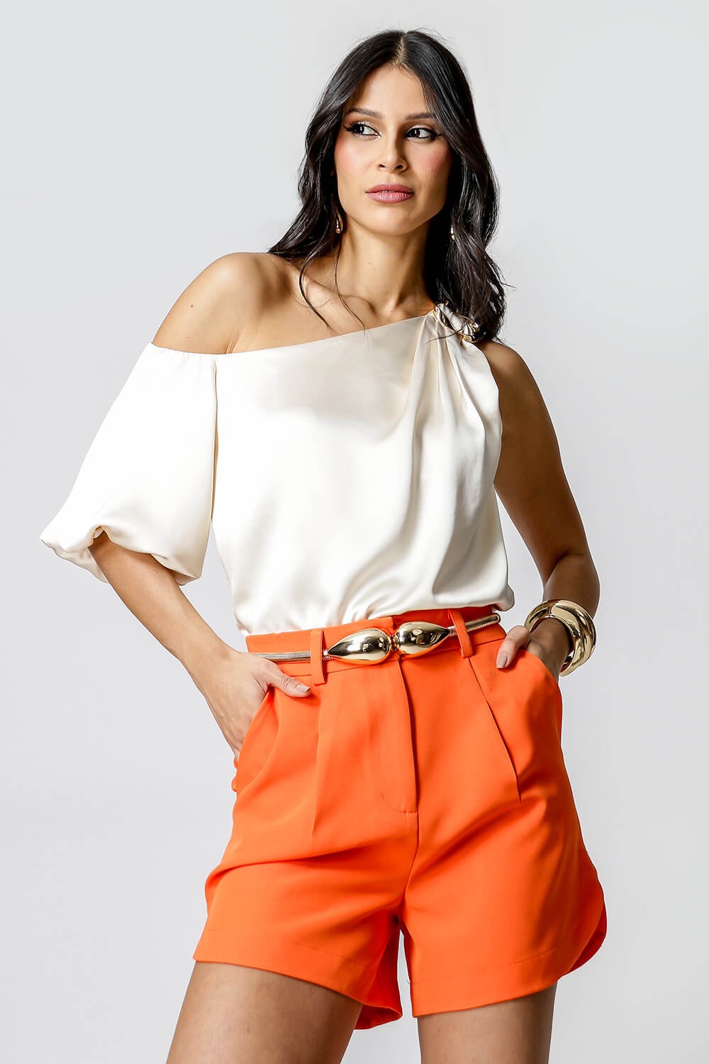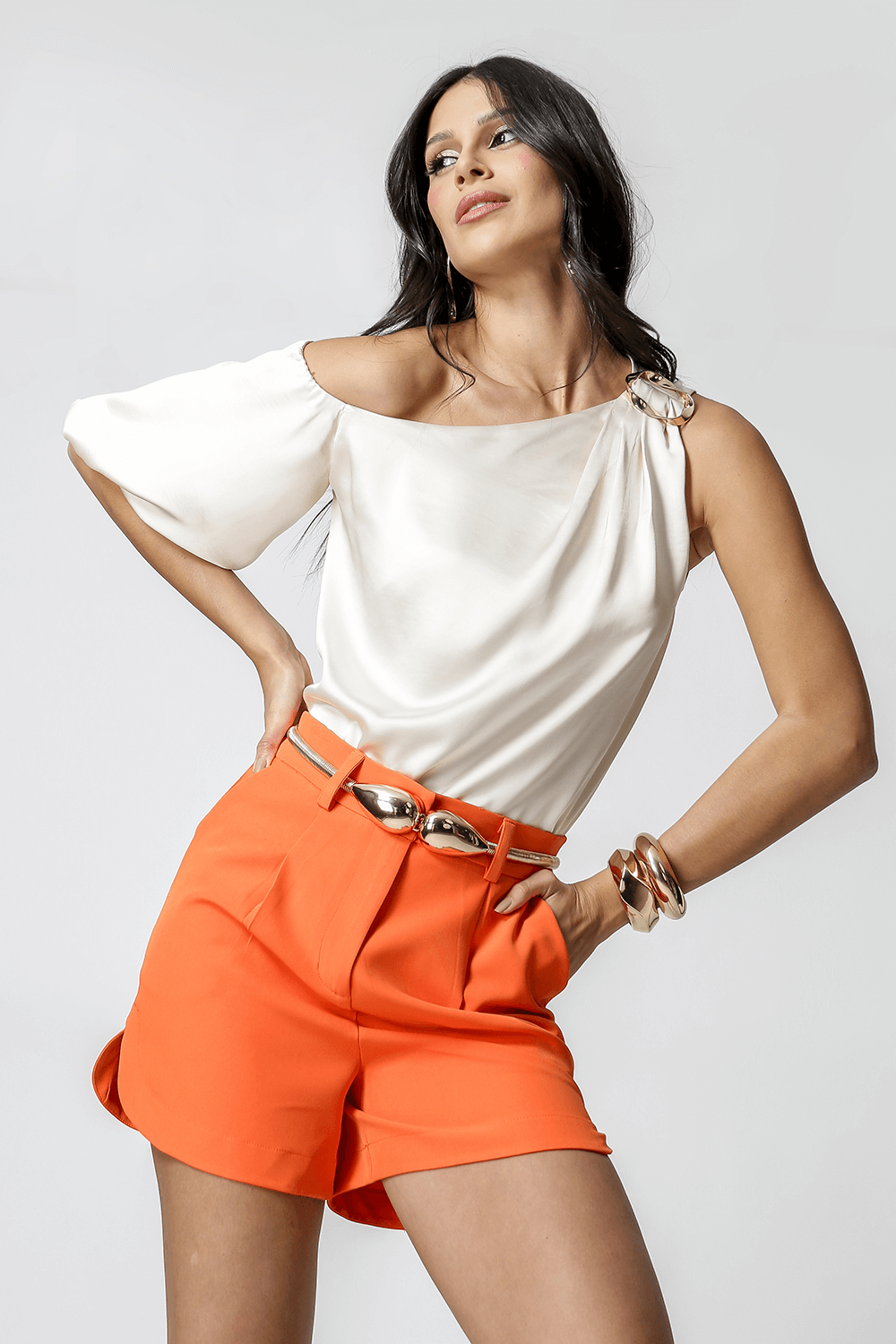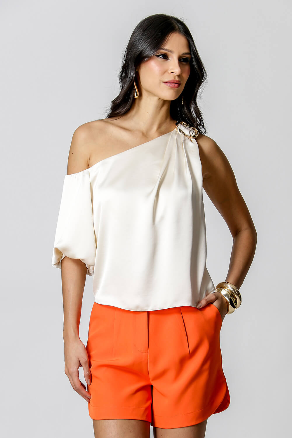 Blusa globo de un solo hombro, tiene un hermoso accesorio, ideal para looks de noche para que luzcas espectacular!