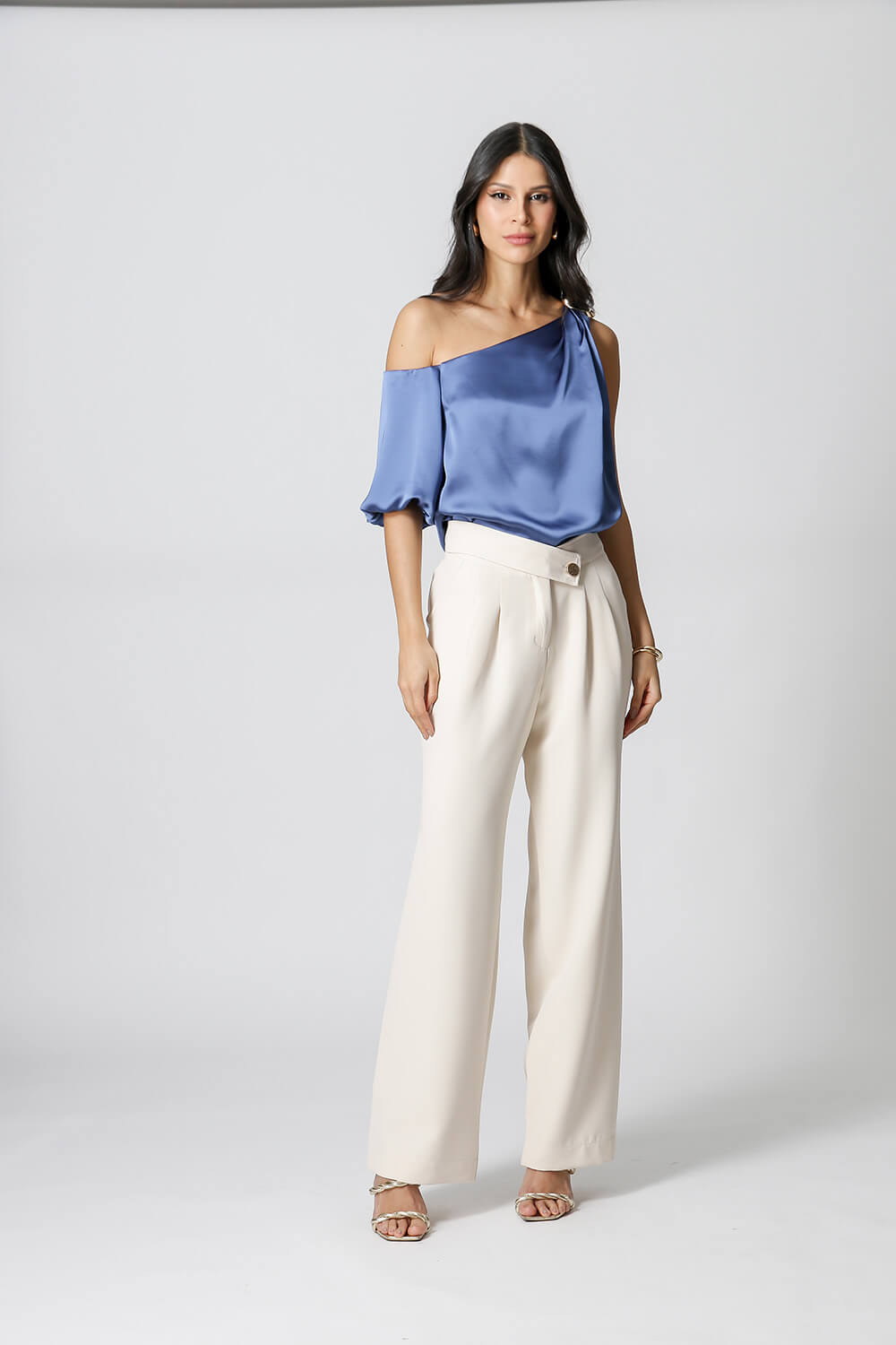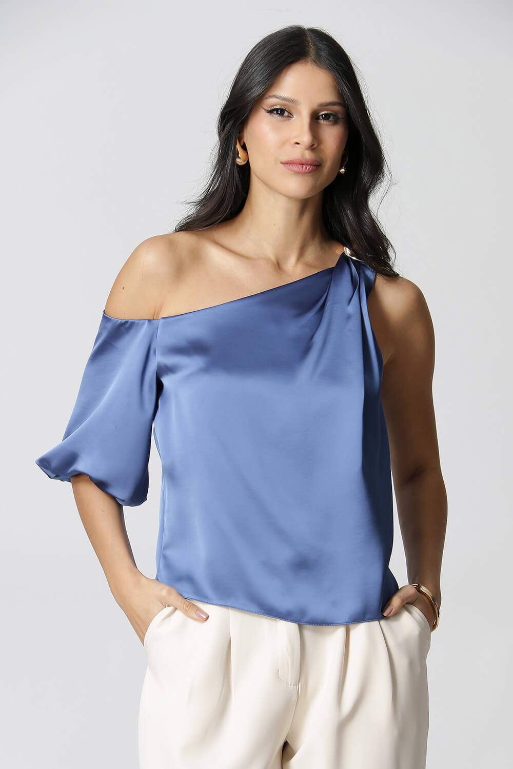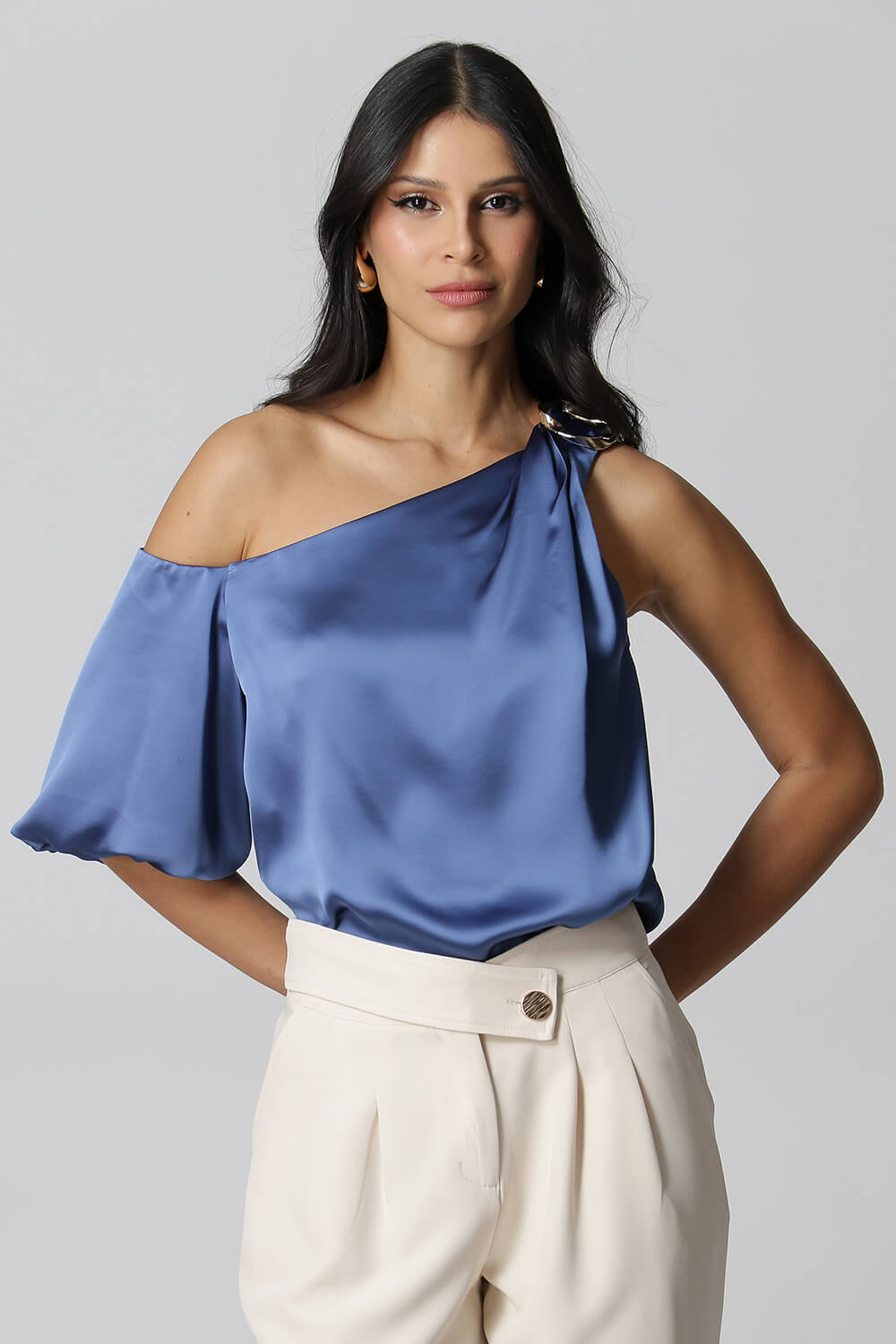 Blusa globo de un solo hombro, tiene un hermoso accesorio, ideal para looks de noche para que luzcas espectacular!