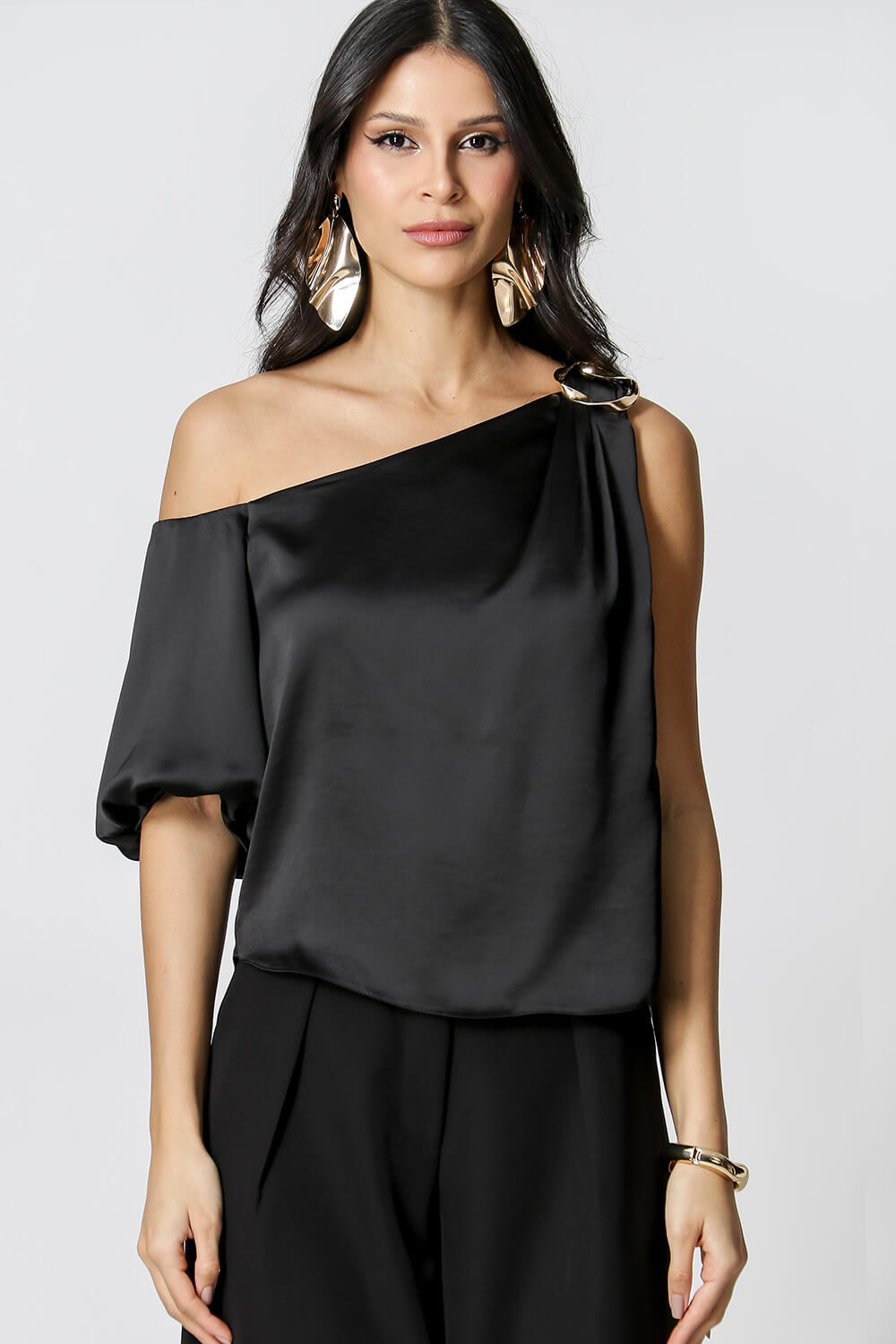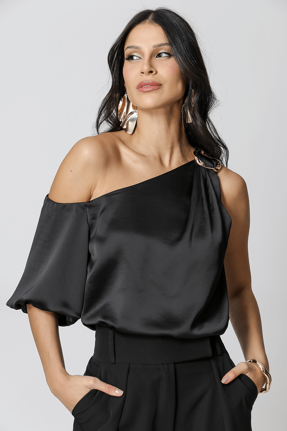 Blusa globo de un solo hombro, tiene un hermoso accesorio, ideal para looks de noche para que luzcas espectacular!