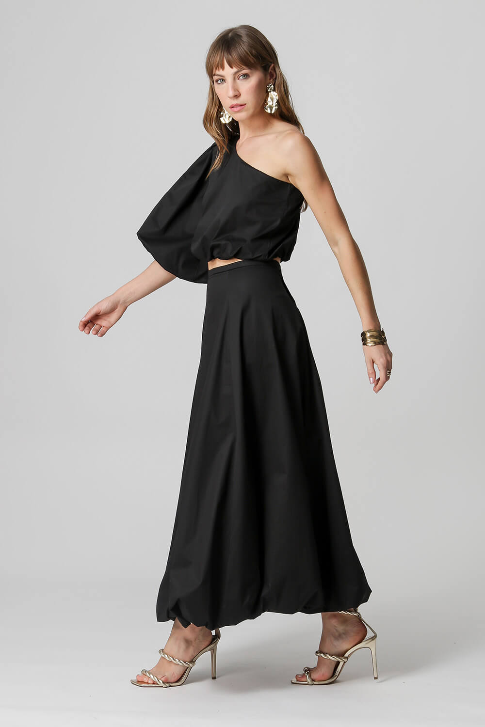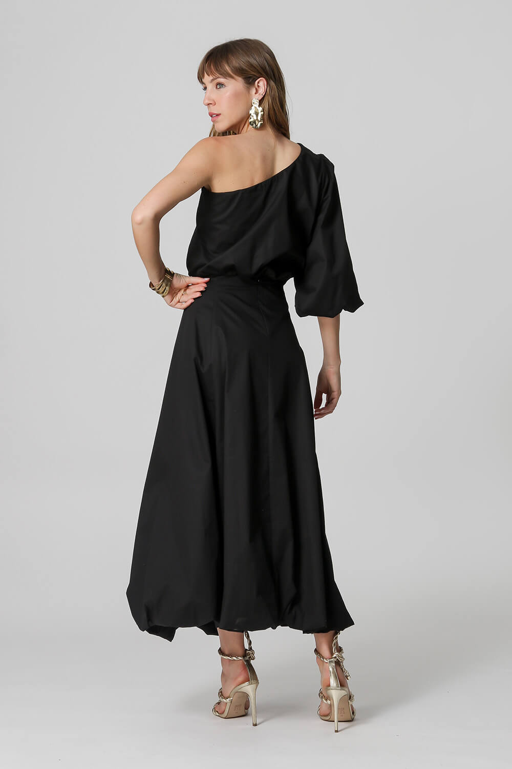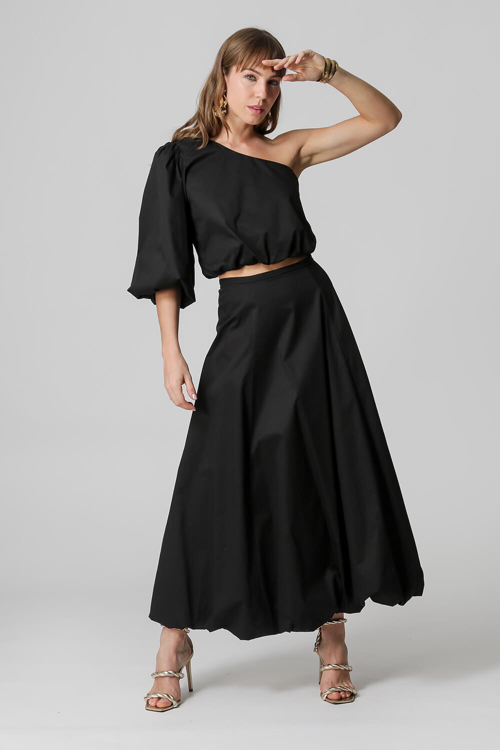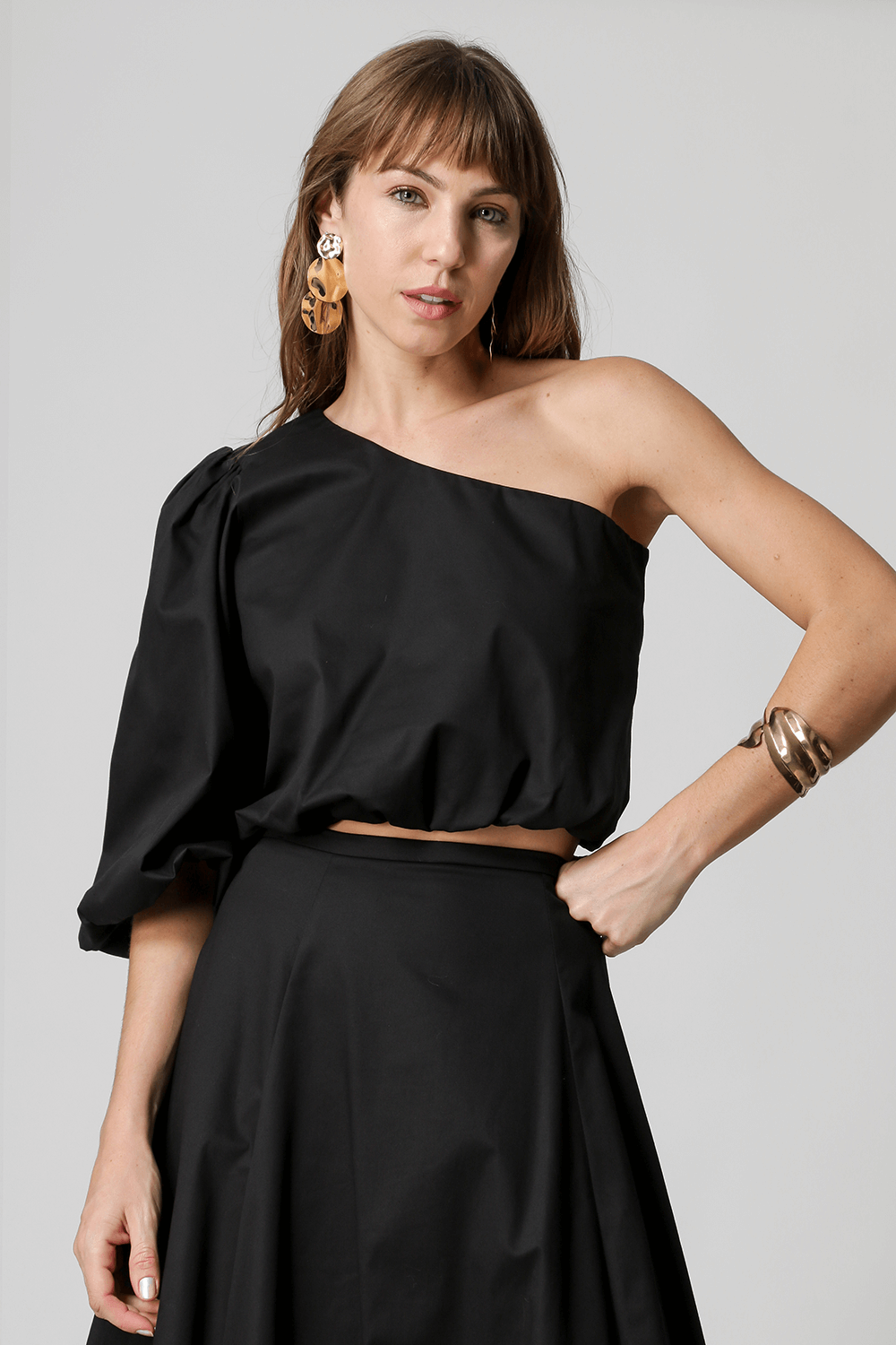 Blusa de un solo hombro con burbujas. Modelo clásico con un toque de modernidad en la manga.