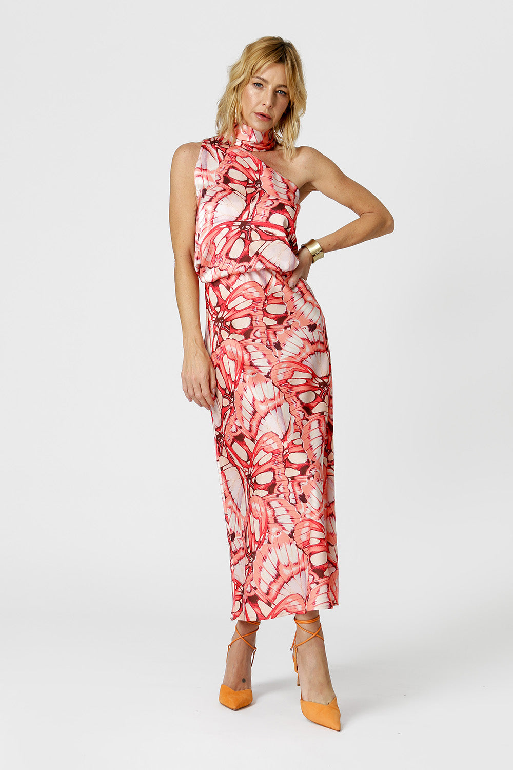 Blusa de un solo hombro con detalle de lazo en el cuello. Pieza confeccionada en tejido de raso burbuja estampado. Una pieza de corte ligero y holgado, una gran opción para un look casual.