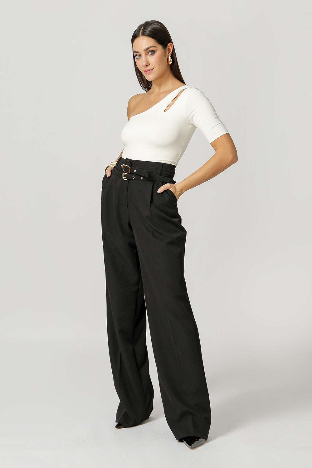 Blusa estilosa de ombro único com detalhe vazado no ombro, confeccionada em malha Amni, que oferece conforto e ótimo caimento. Ideal para compor looks modernos em saídas à noite ou eventos casuais.