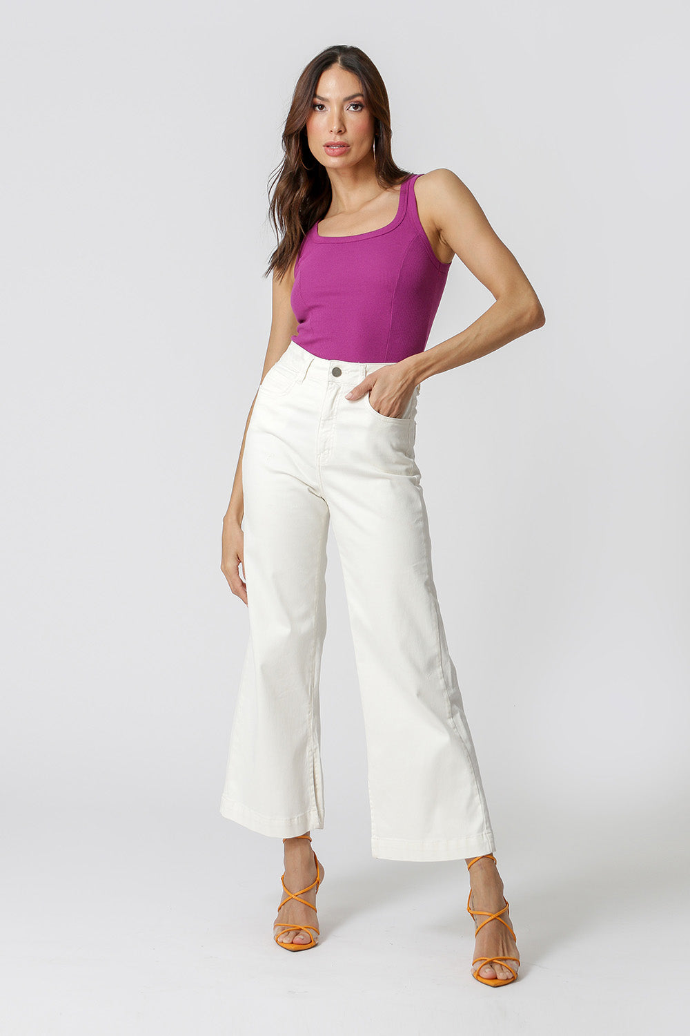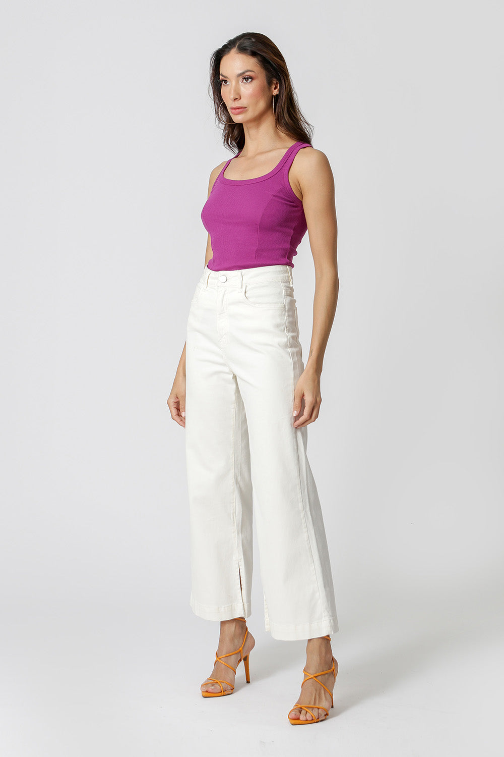 Camiseta de tirantes anchos, confeccionada en punto canalé. Lo básico que necesitas tener.
