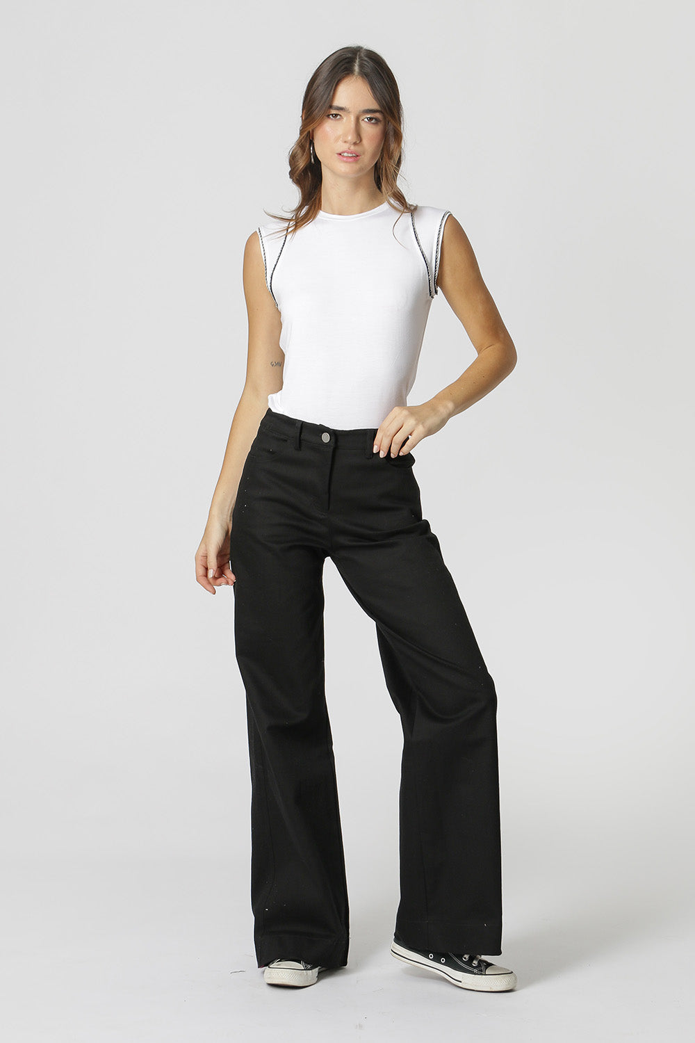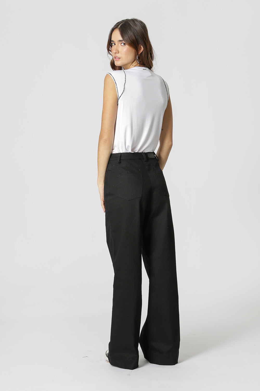 Pantalones minimalistas de pierna ancha - BLANCO ROJO Pantalones minimalistas de pierna ancha - BLANCO ROJO