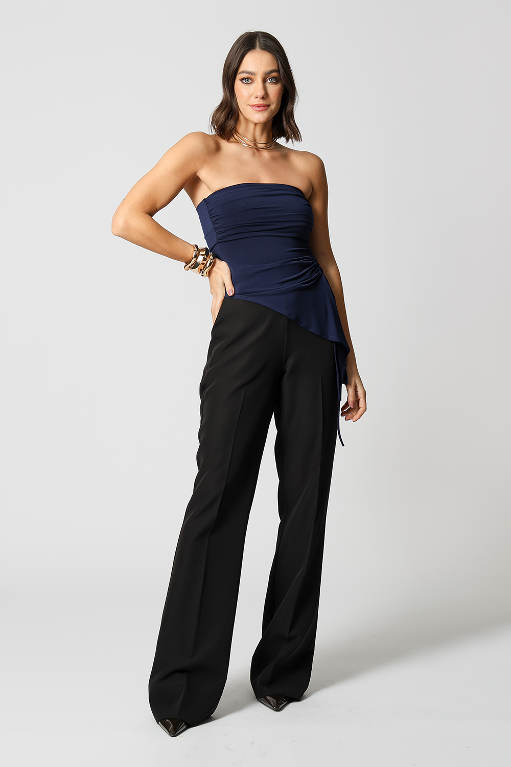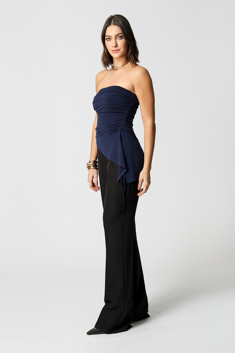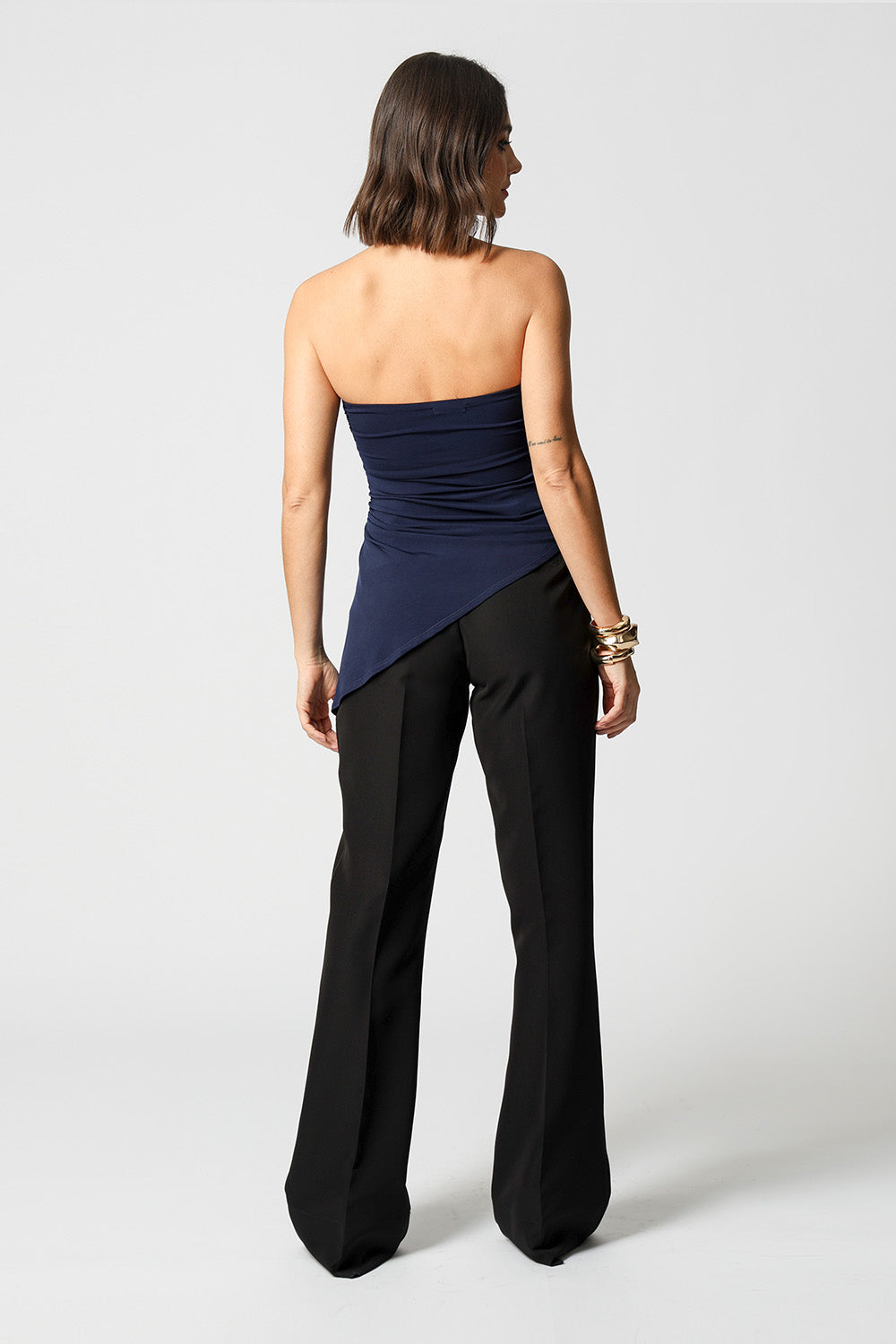Blusa sin tirantes en punto ity. Una pieza delicada que aporta un look elegante y es perfecta para un look de noche.