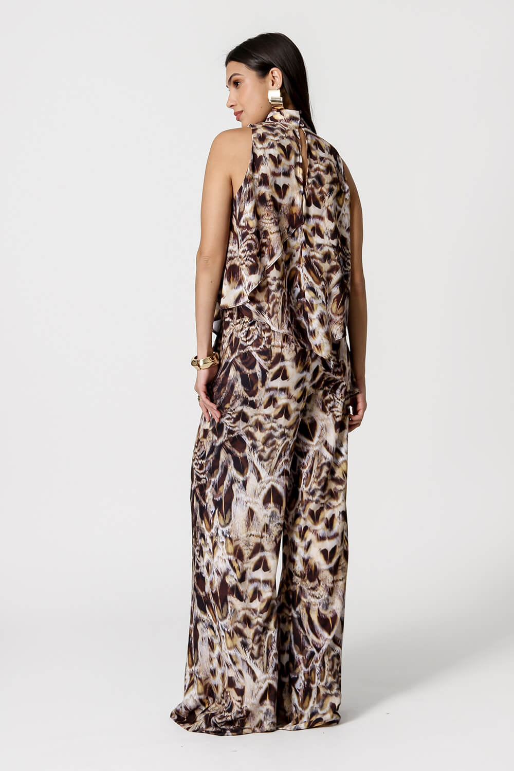 Blusa asimétrica sin mangas y cuello alto. Fabricado en tejido estampado fluido. Un modelo elegante de corte holgado y cómodo para un look casual.