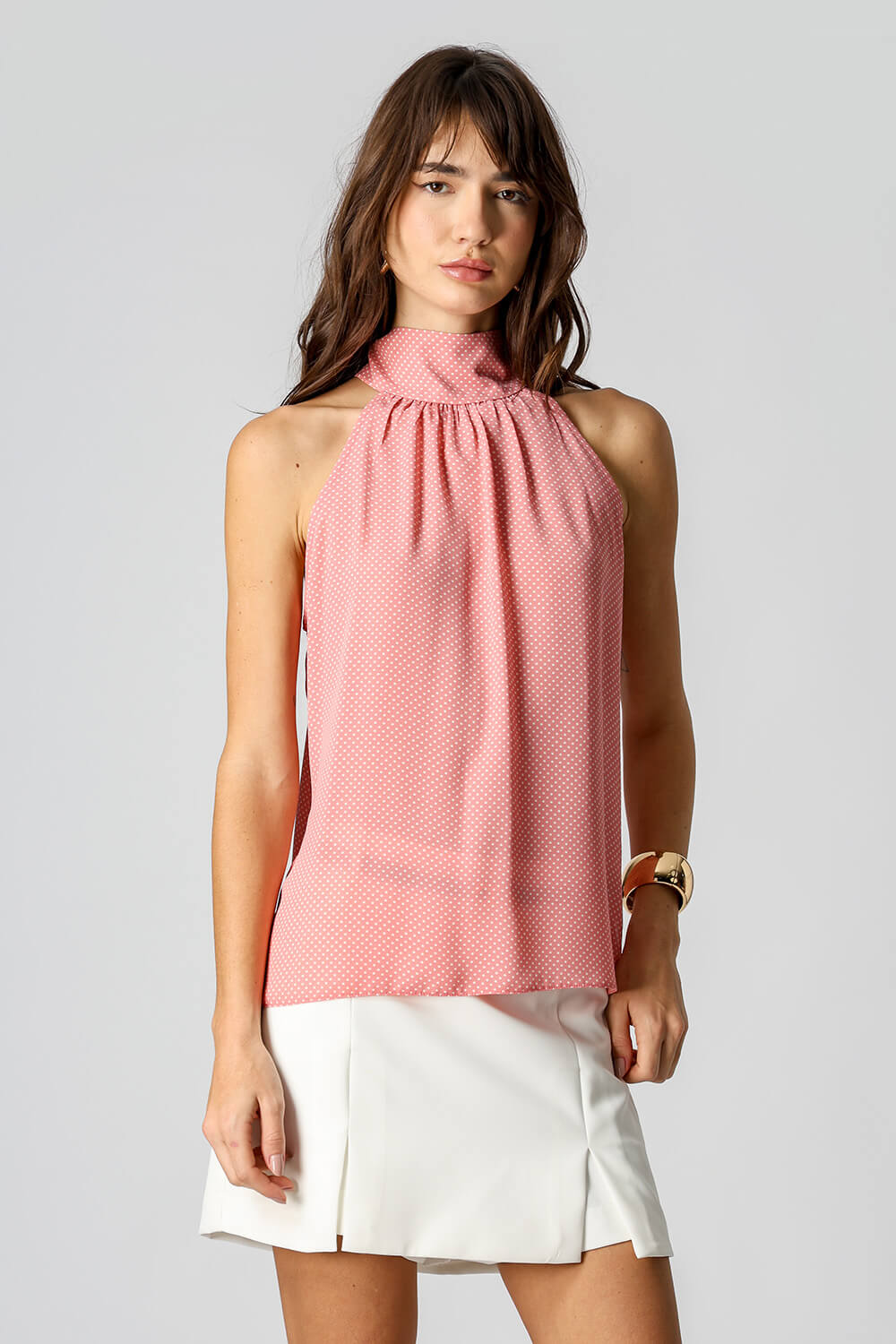 Elegante e cheia de charme, esta blusa sem manga é a escolha perfeita para compor looks sofisticados e modernos. O destaque fica por conta da gola alta com detalhe de duas fitas que podem ser amarradas em um laço delicado, adicionando feminilidade e estilo à peça.