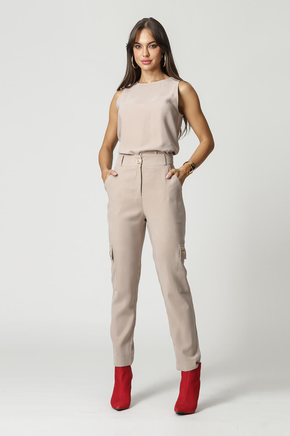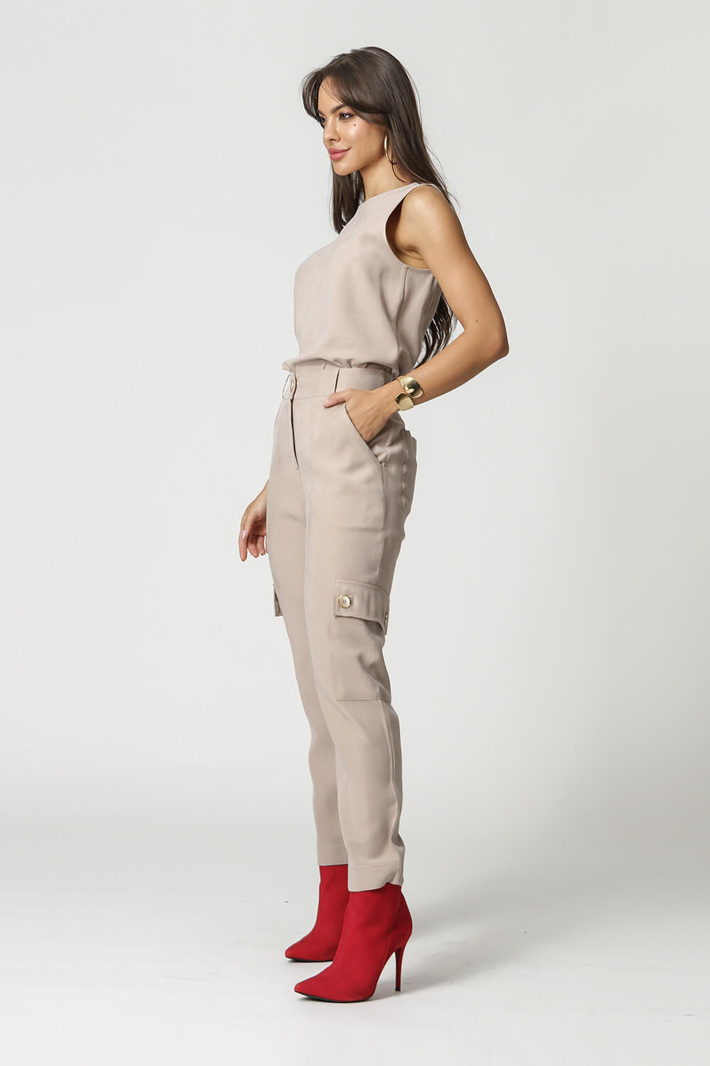 Blusa sin mangas con botón en la espalda. Un modelo realizado con tejido Tencel. Una pieza perfecta para el uso diario ya que es muy cómoda.