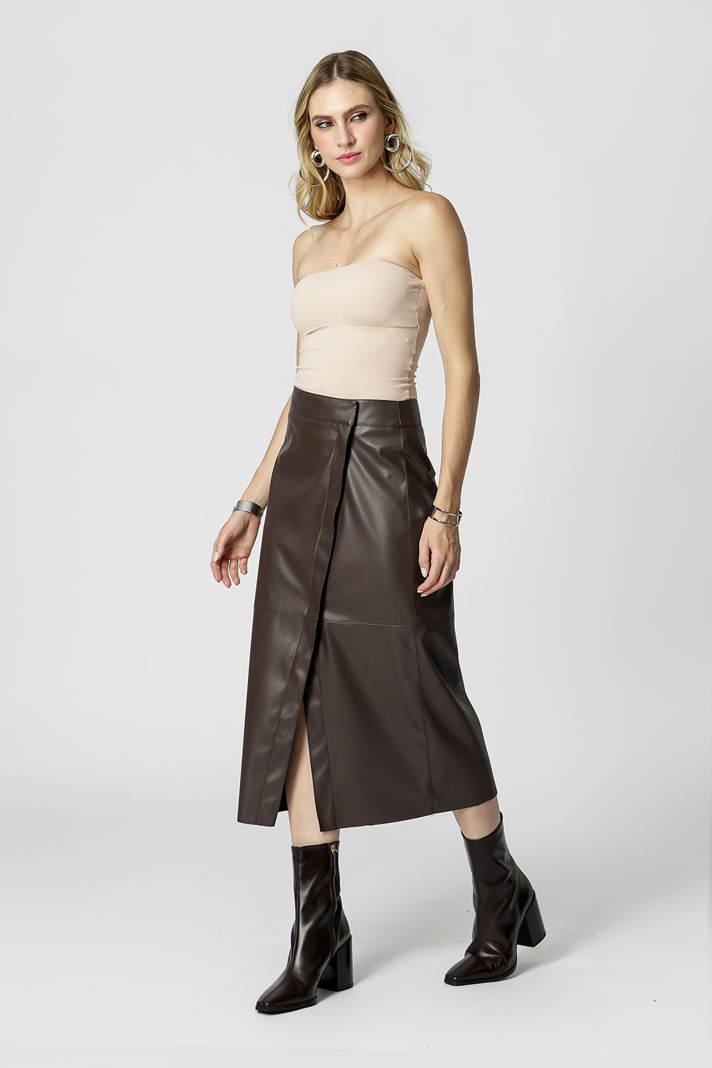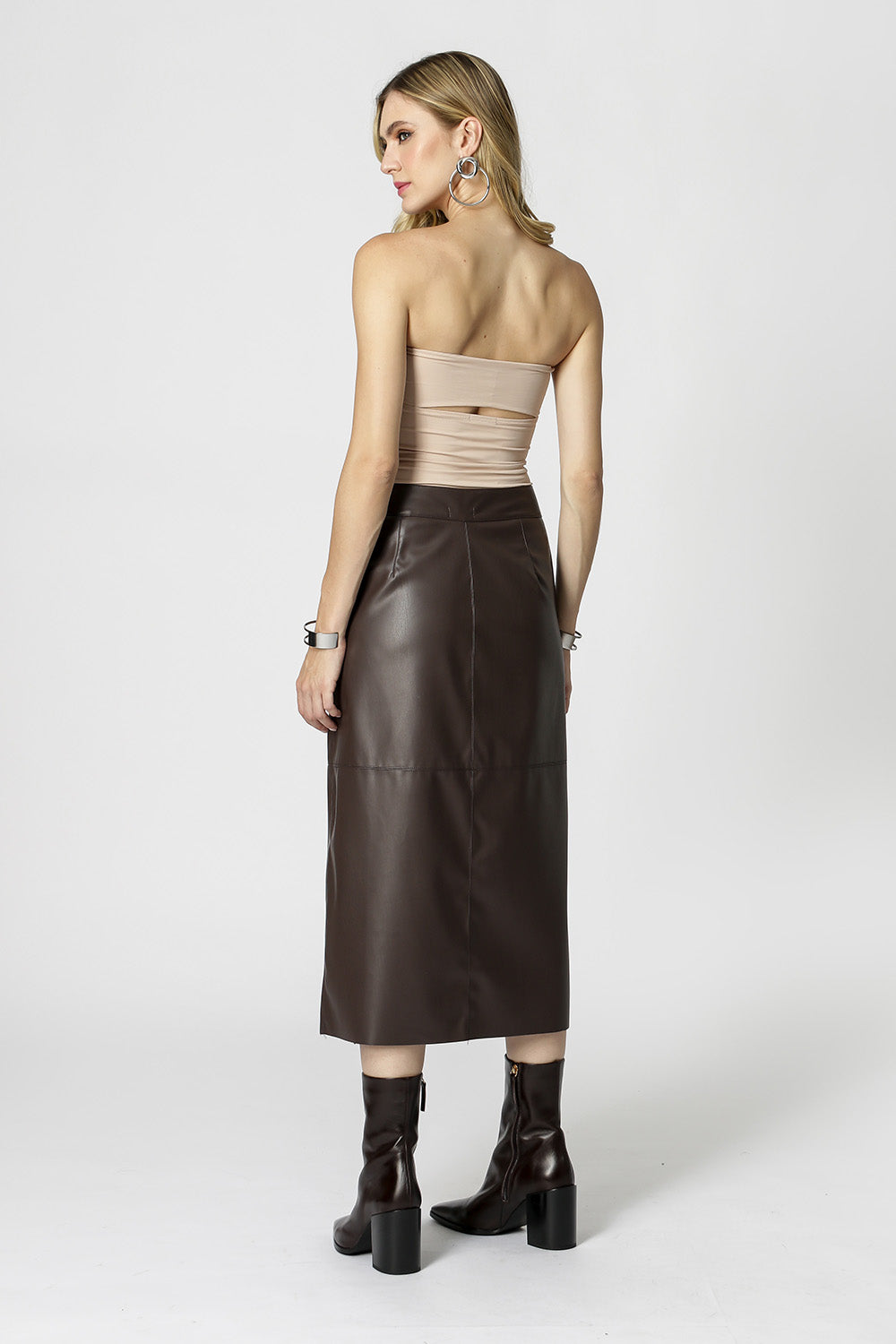Blusa strapless com decote reto frontal, com delicada abertura nas costas. Uma peça confeccionada em malha amni, um item versátil e peça complemento para diversos looks.