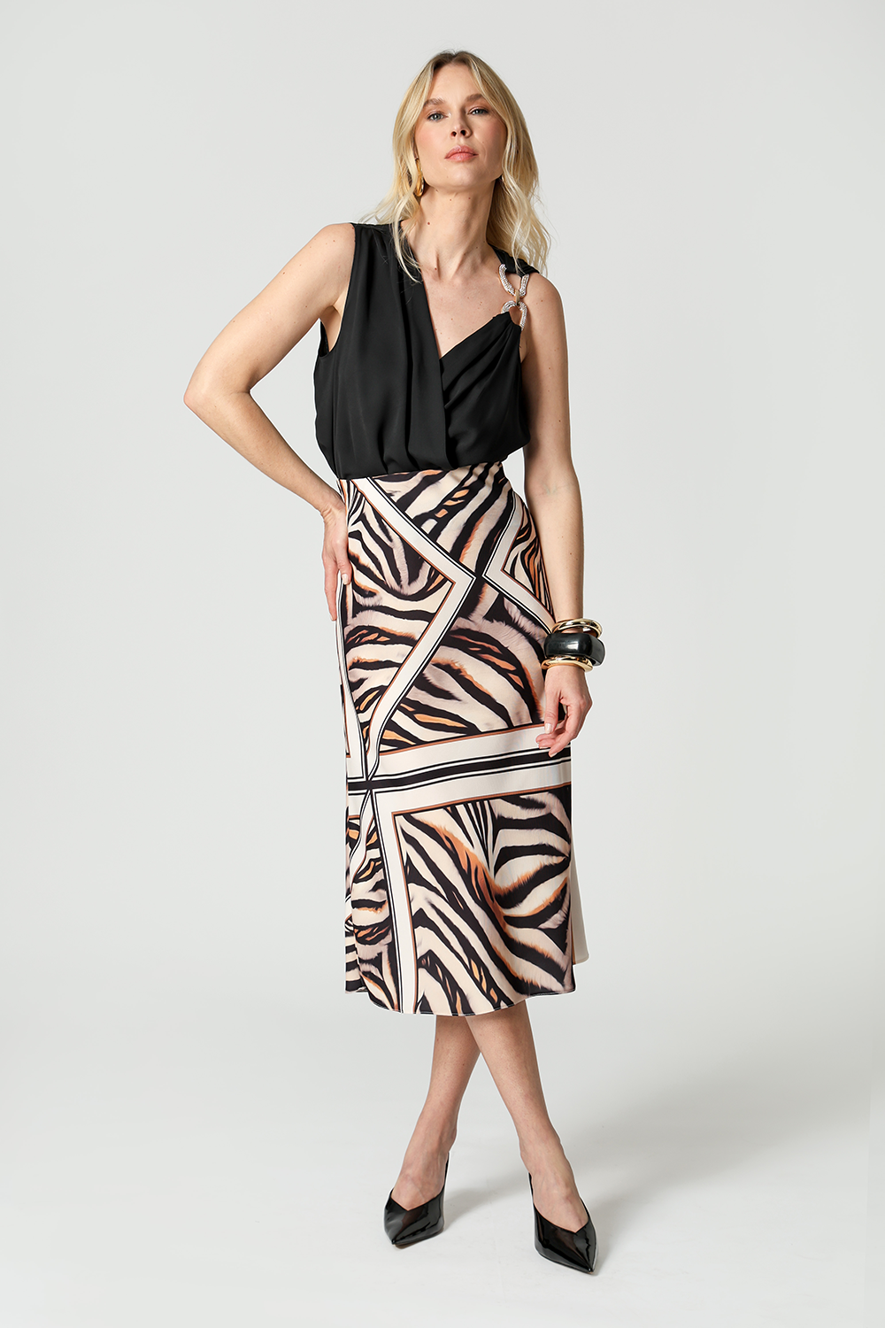 Blusa em crepe Segall, modelo transpassado, com aviamento de strass aplicado no ombro esquerdo. Elegante e moderna, oferece caimento leve e acabamento sofisticado ¿ perfeita para compor looks versáteis do dia à noite.