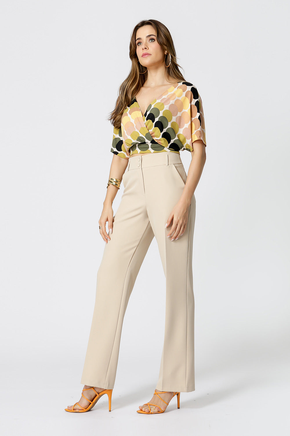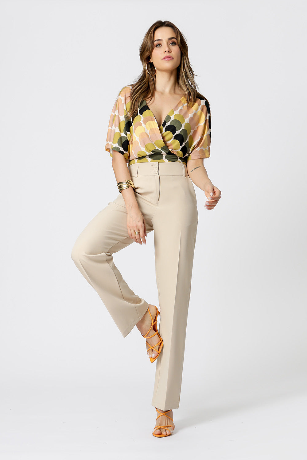• Top cruzado de manga corta estampado - BEIGE 28365