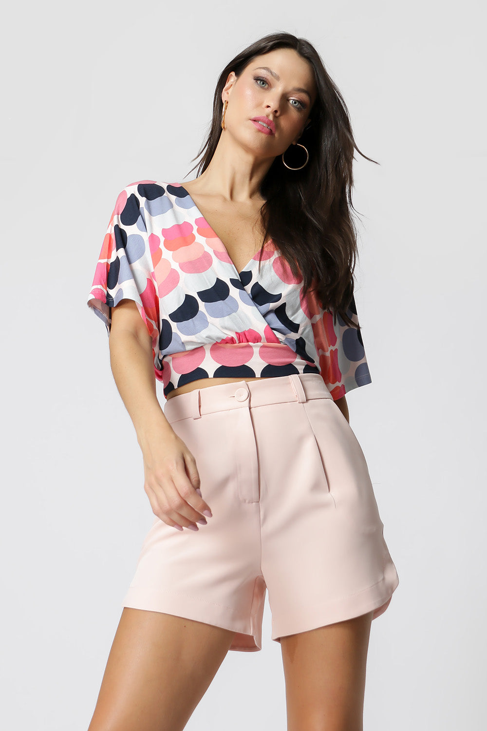 Top cruzado de manga corta estampado - ROSA BEBÉ 18365
