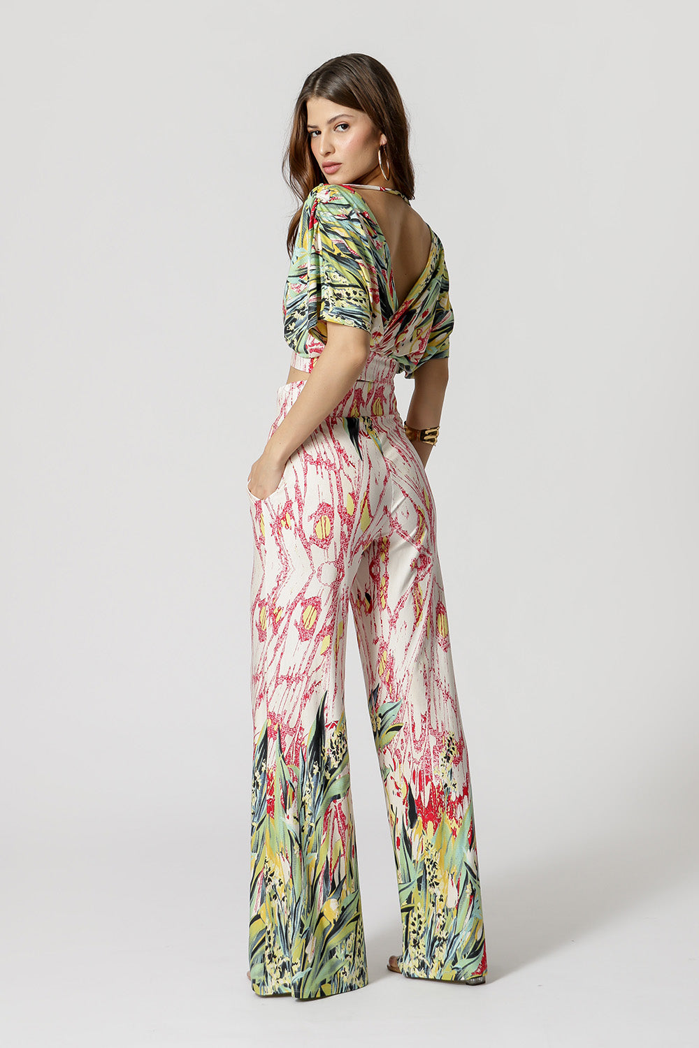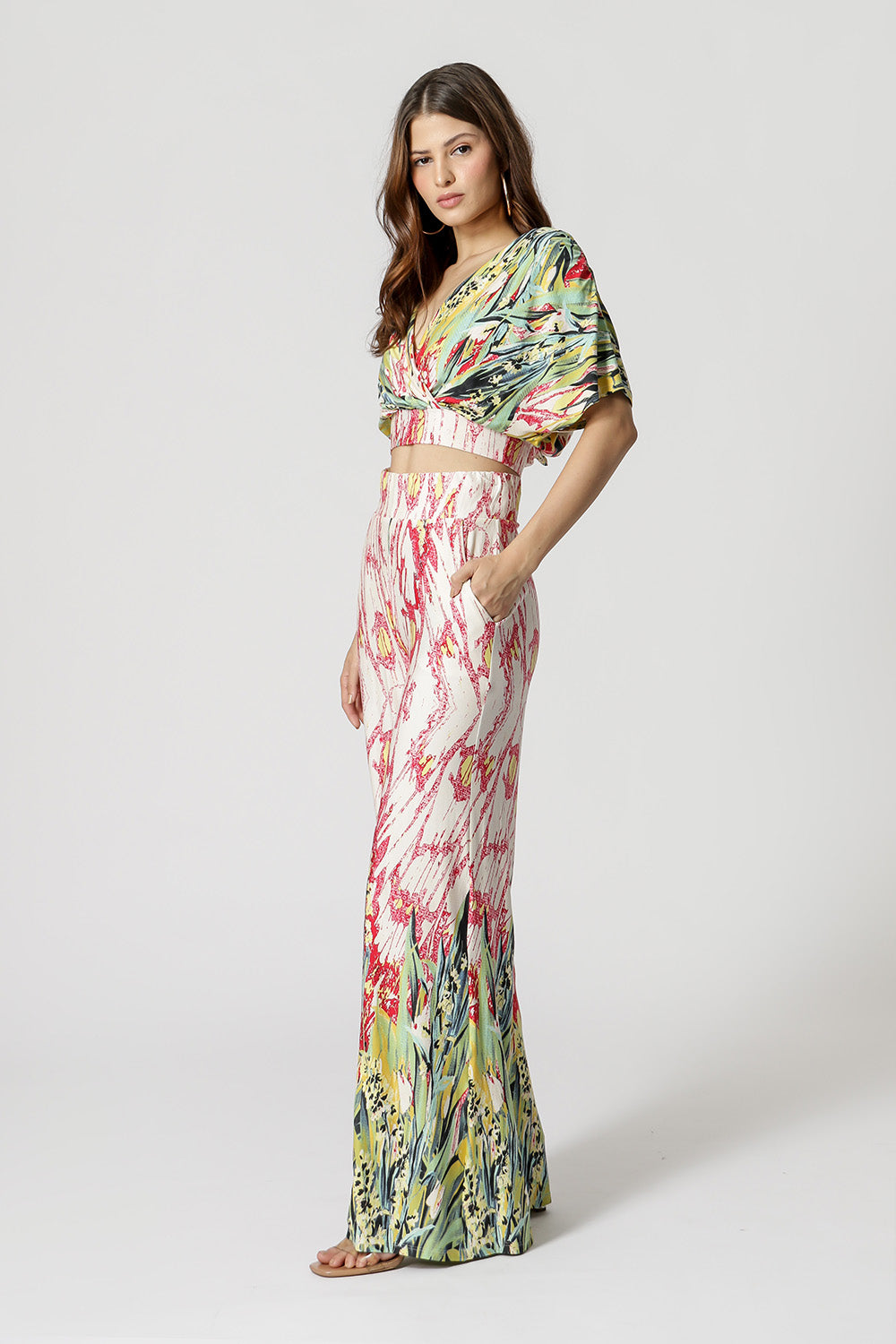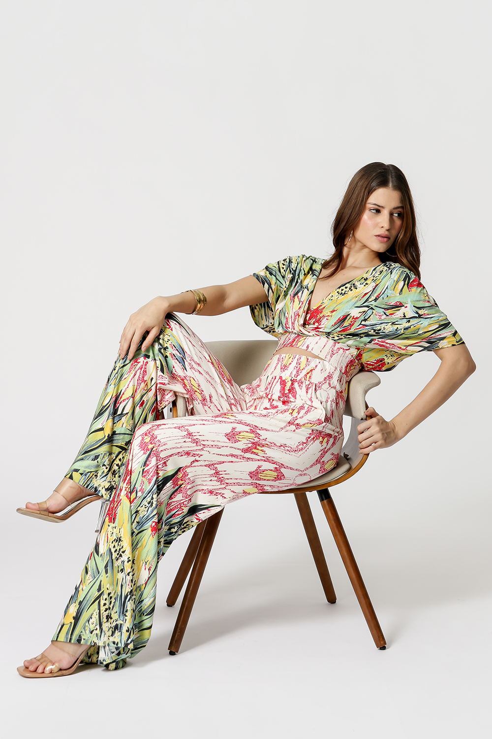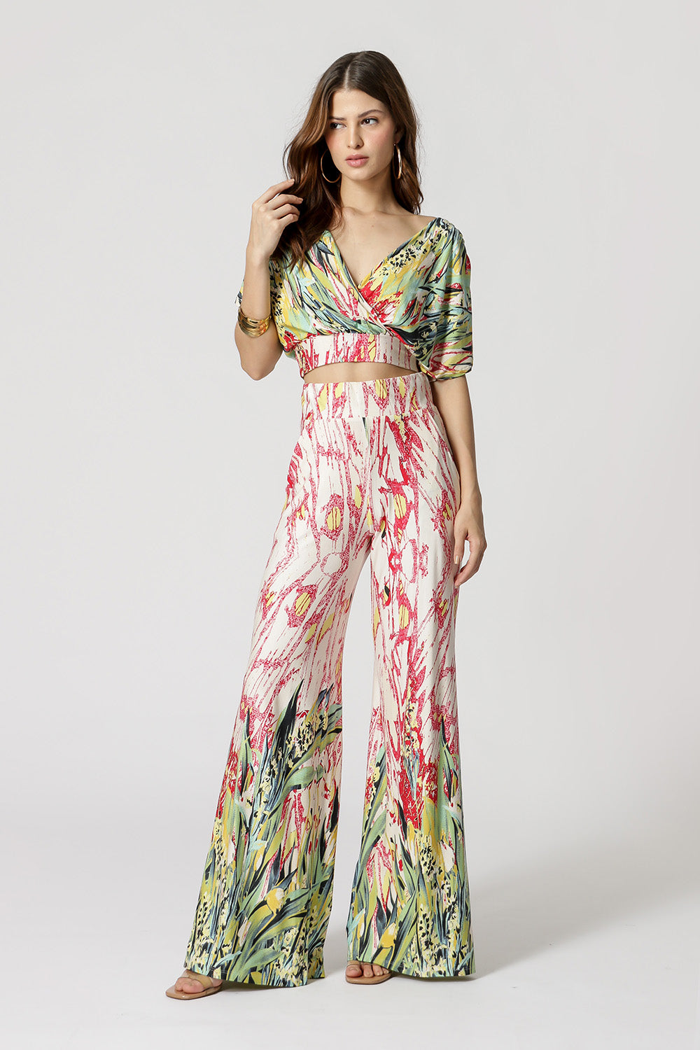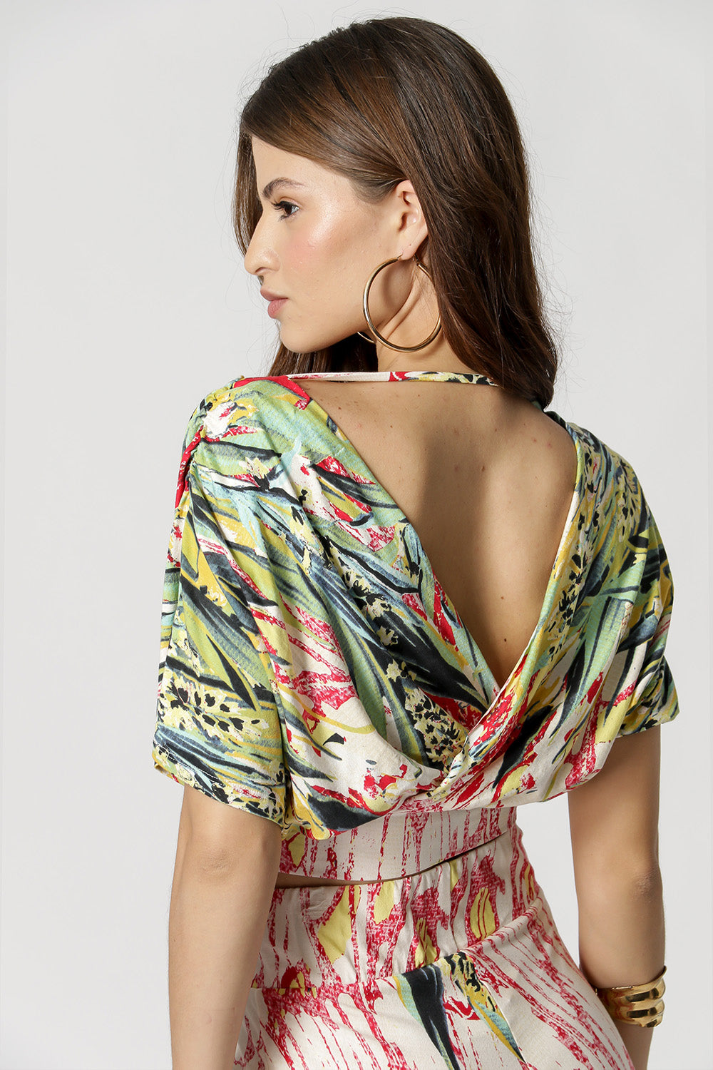 Blusa cruzada con mangas cortas estampadas. Pieza confeccionada con tejido de punto estampado. Modelo ideal para combinar con jeans e incluso con un outfit casual.