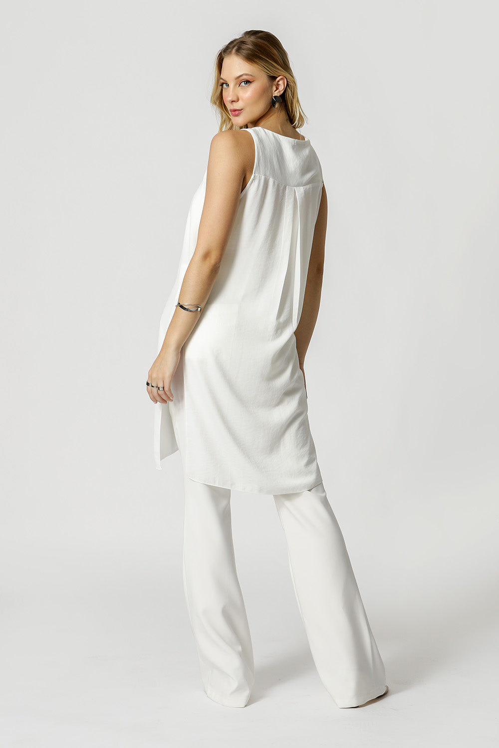 Blusa túnica con detalle de pedrería en el escote. Fabricado en tejido crepe de textura ligera. Un modelo único y elegante, una gran opción para un look casual.