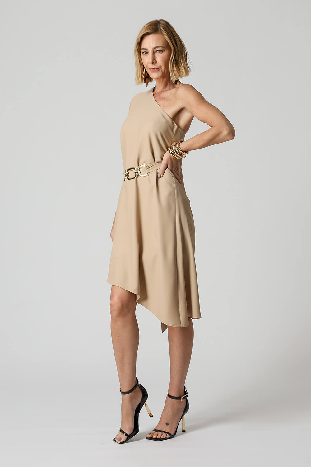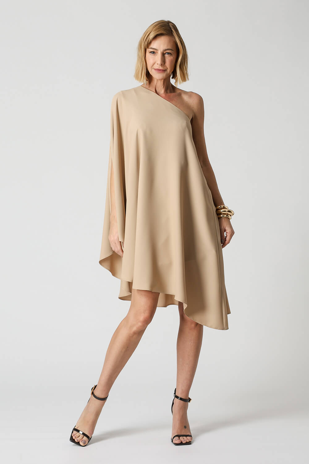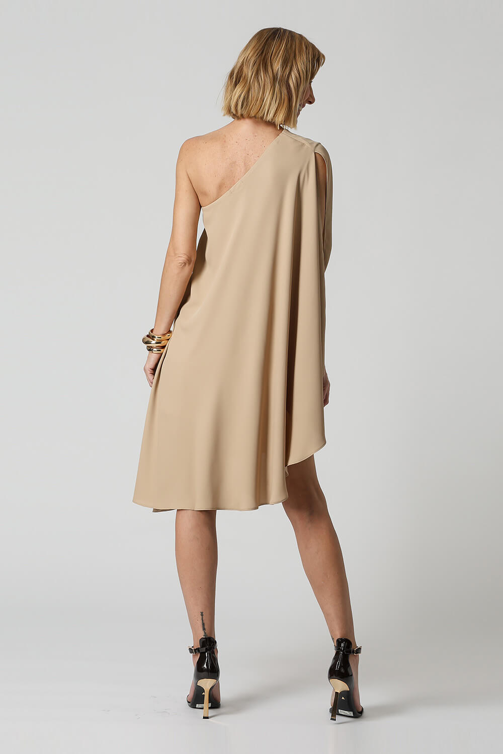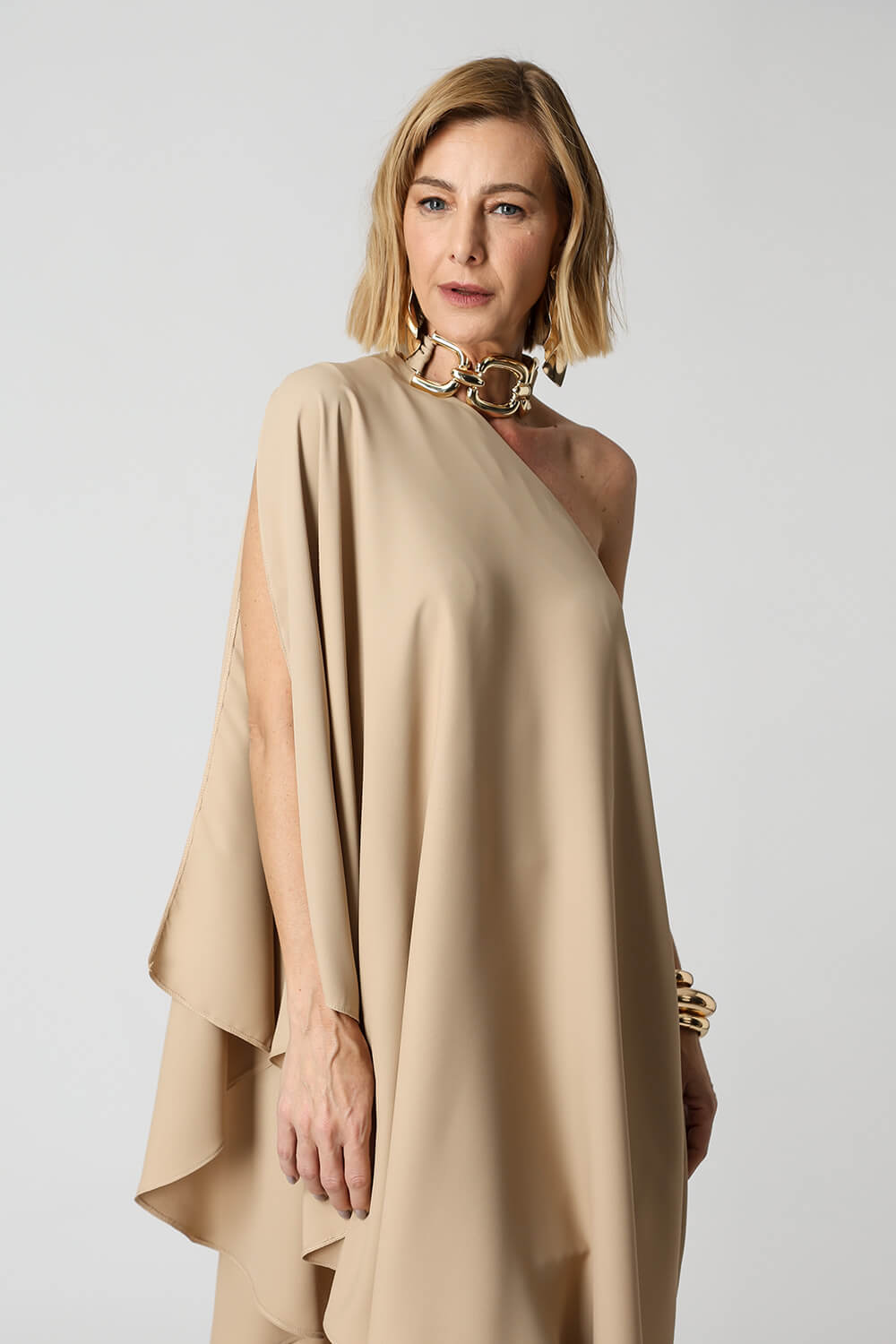 Blusa túnica de un solo hombro. Pieza confeccionada en tejido crepe fluido. Un modelo elegante y moderno con una forma suelta que proporciona comodidad, una gran opción para un ambiente casual.