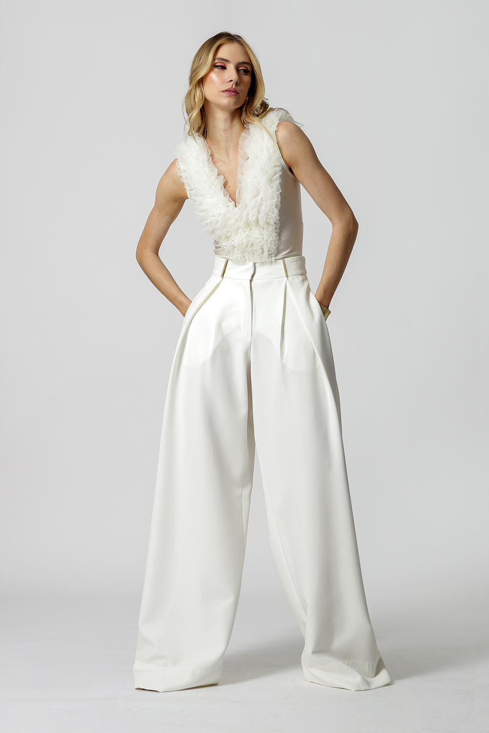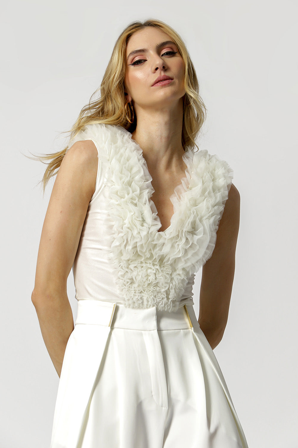 Body con volante de tul y espalda abierta. Pieza confeccionada en tejido de malla y tul. Un modelo súper diferente y con mucho estilo.