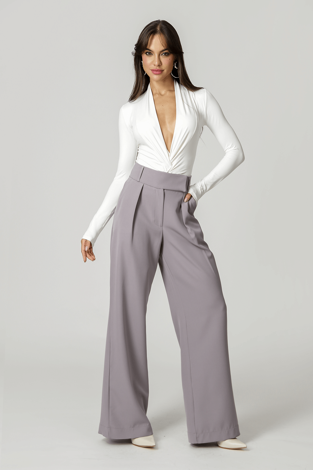 Body de manga larga y escote en pico. Pieza realizada en tejido amni. ¡Una pieza perfecta para usar en diferentes looks, siendo súper fácil de combinar y lucir!