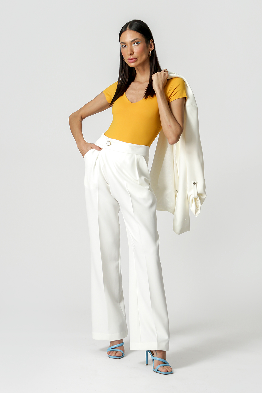 Body de punto con escote pico y manga corta. Una pieza más básica pero también versátil para muchas ocasiones.