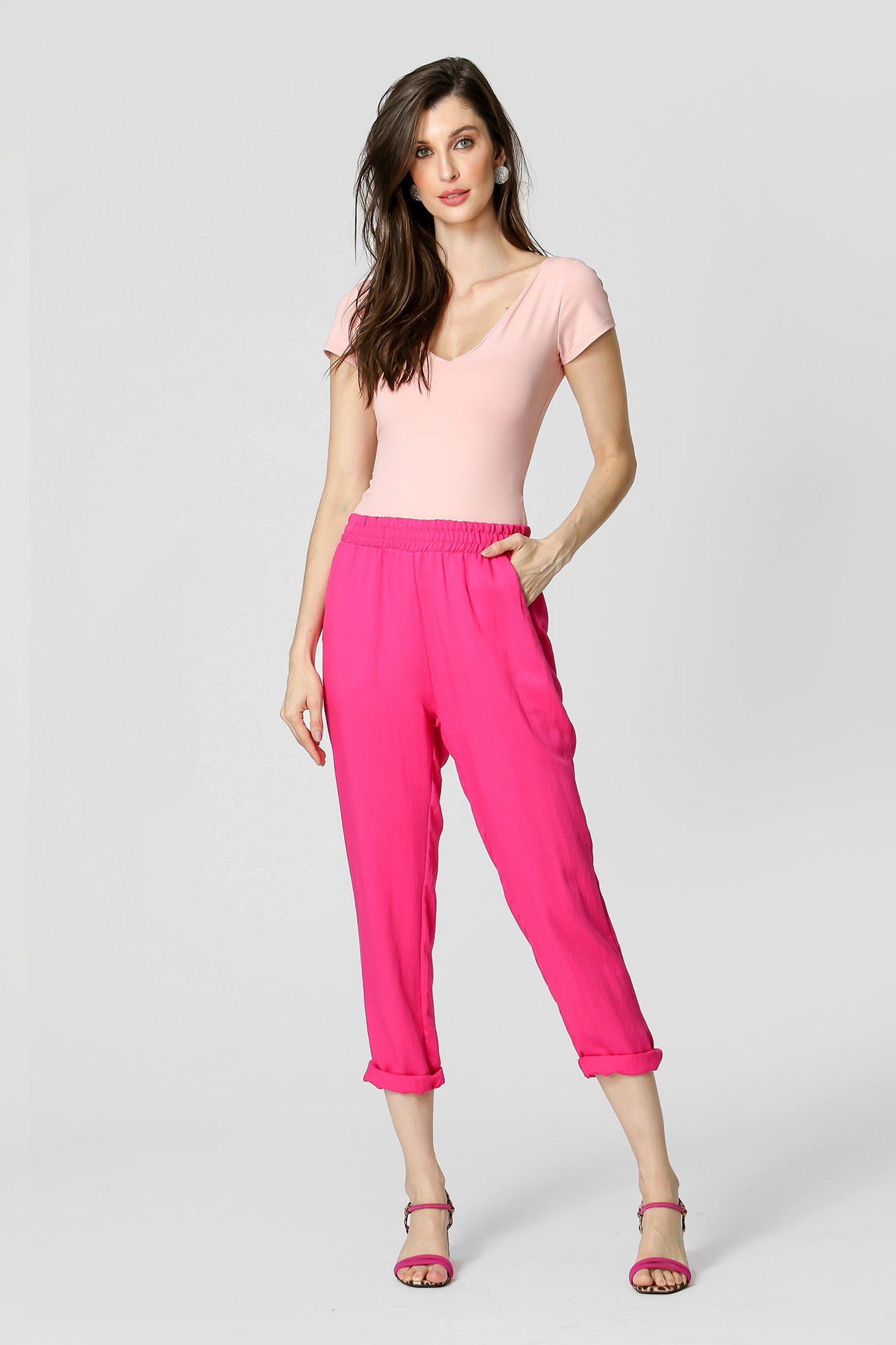 Body de punto con escote pico y manga corta. Una pieza más básica pero también versátil para muchas ocasiones.