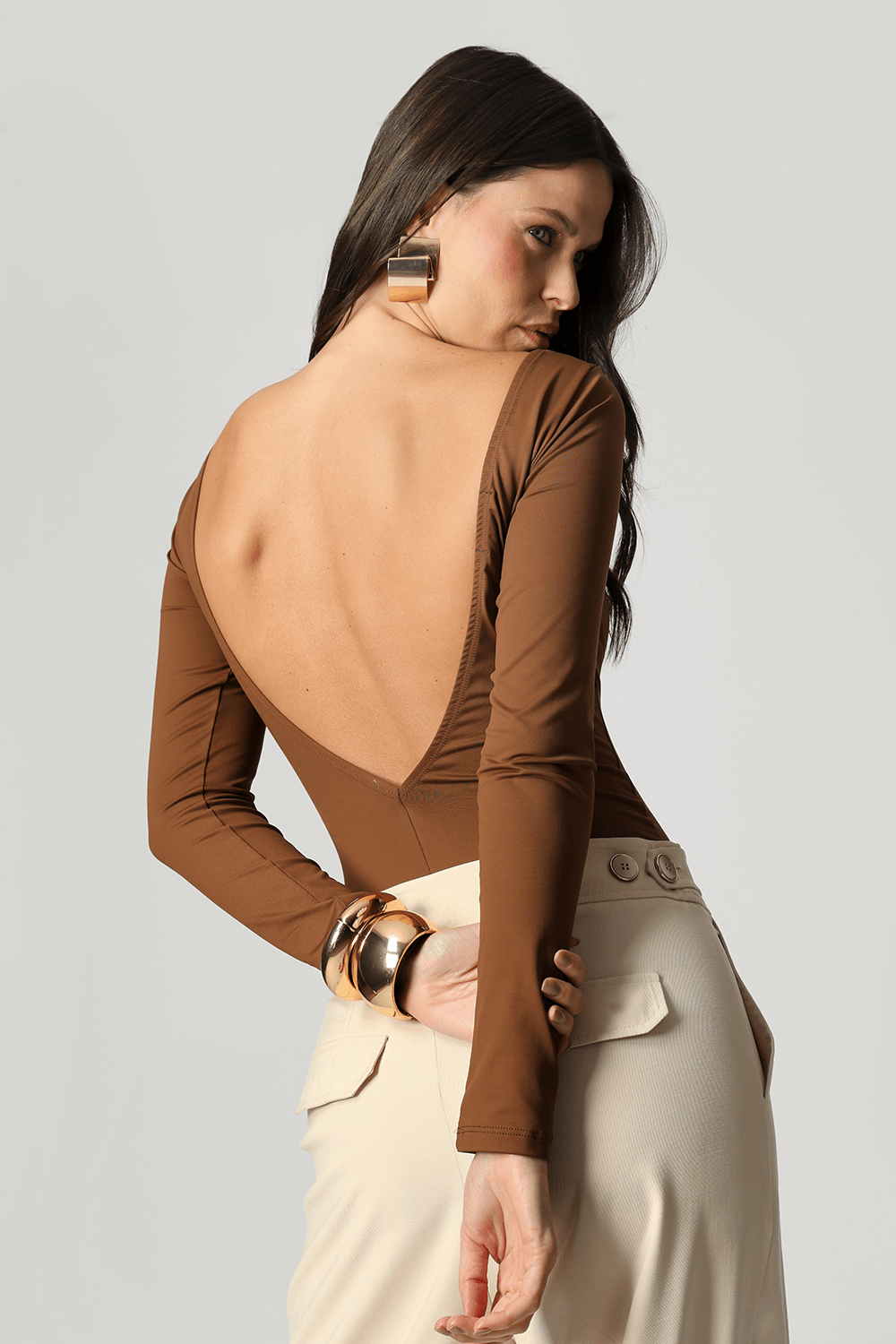 Cuerpo en malla de poliamida con elastano. Tiene mangas largas, talla ajustable y escote profundo en la espalda. Ya viene con una taza incorporada para brindar mayor comodidad y seguridad.