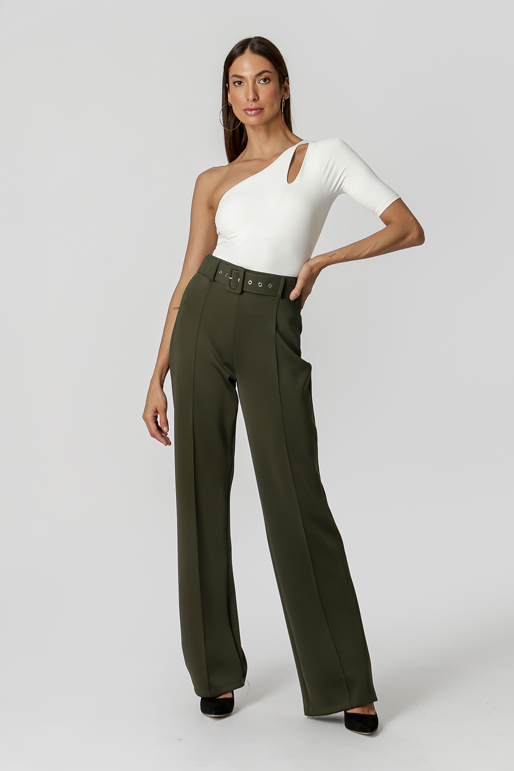 Body de un solo hombro con manga corta y detalle calado. Pieza realizada en malla Amni. Ideal para una variedad de combinaciones casuales.