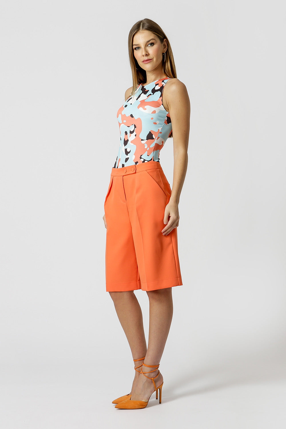 Body confeccionado en punto estampado, con un corte básico muy versátil y moderno para el día a día, espalda con escote nadador, ideal para llevar con pantalón clochard o palazzo.