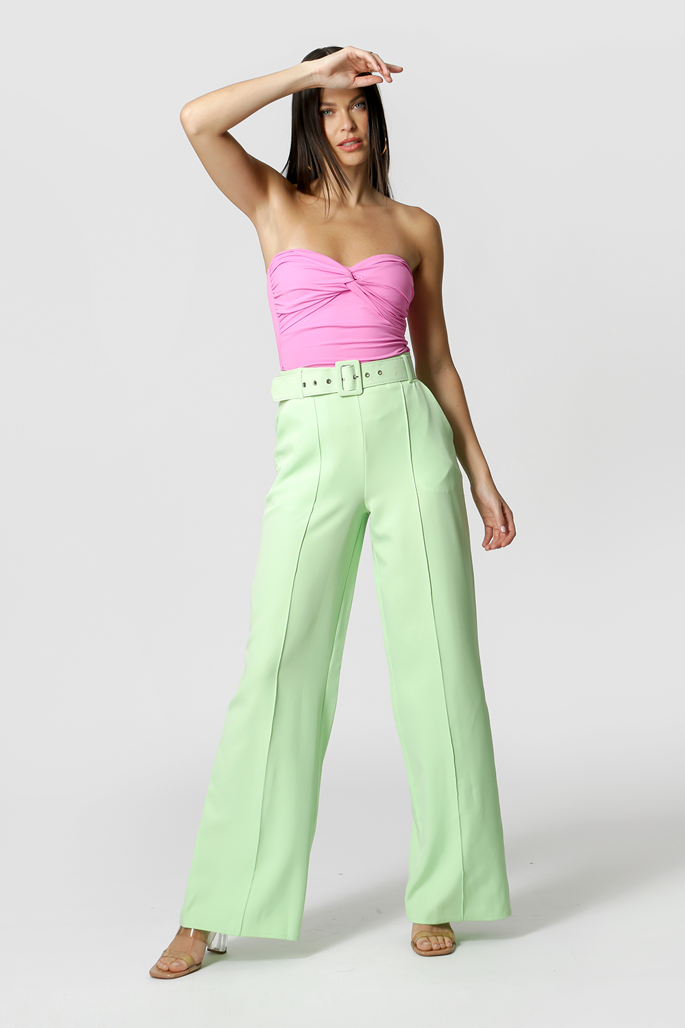 Body sin tirantes con escote retorcido y detalle fruncido. Confeccionado en tejido Amni Mesh, una pieza de forma ajustada que realza la silueta femenina, perfecta para crear looks casuales.