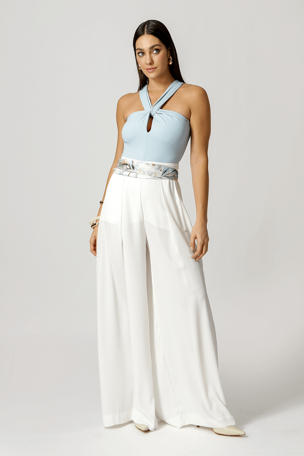 Body em malha Amni com decote torcido e recorte vazado no busto, que valoriza o colo com sensualidade na medida certa. Alças torcidas e caimento confortável com toque macio. Ideal para compor looks modernos do dia à noite.