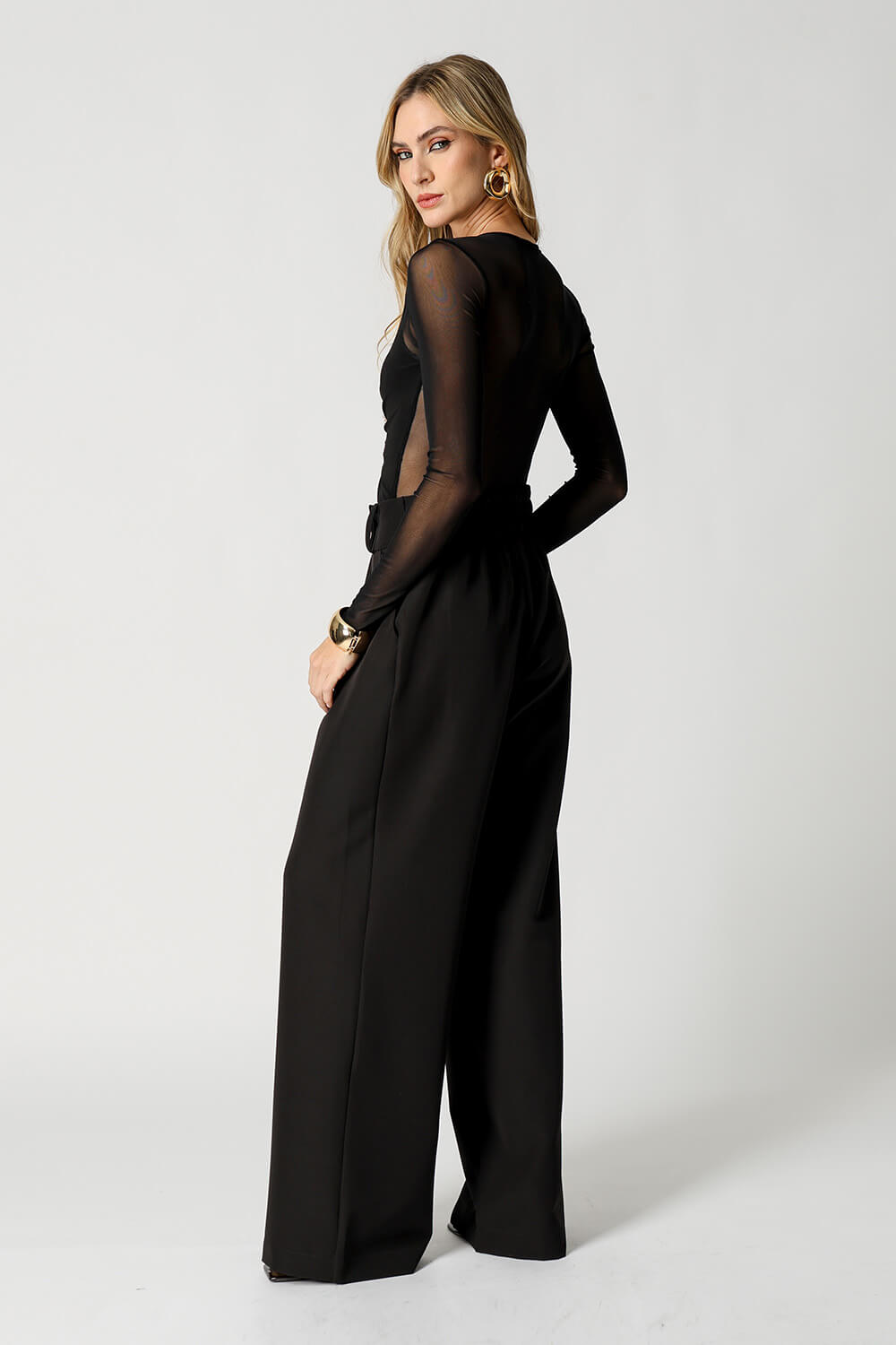 Body com mix de tecidos e twist transpassado frontal, que valoriza o colo e traz um toque moderno ao visual. Modelagem ajustada, ideal para composições elegantes e versáteis.