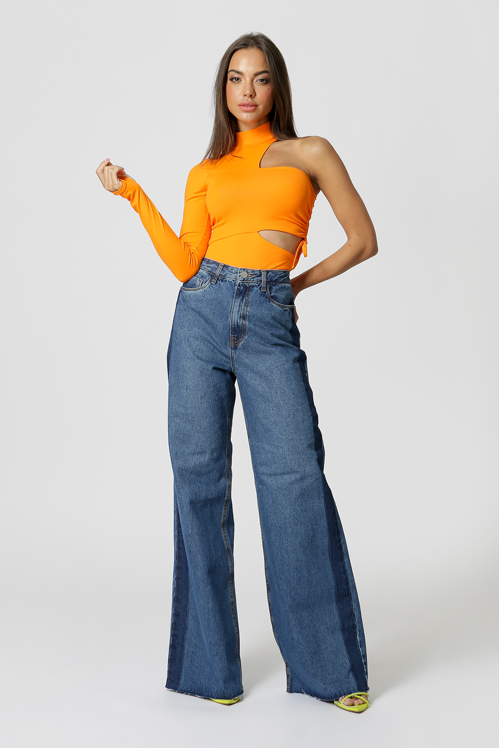 Body asimétrico con cortes y detalle de lazo en el lateral. Pieza realizada en malla amni. Perfecto para un look de club.