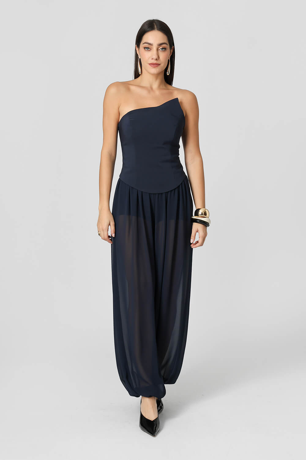 • Calça Aladim Em Chiffon Glass - MARINHO