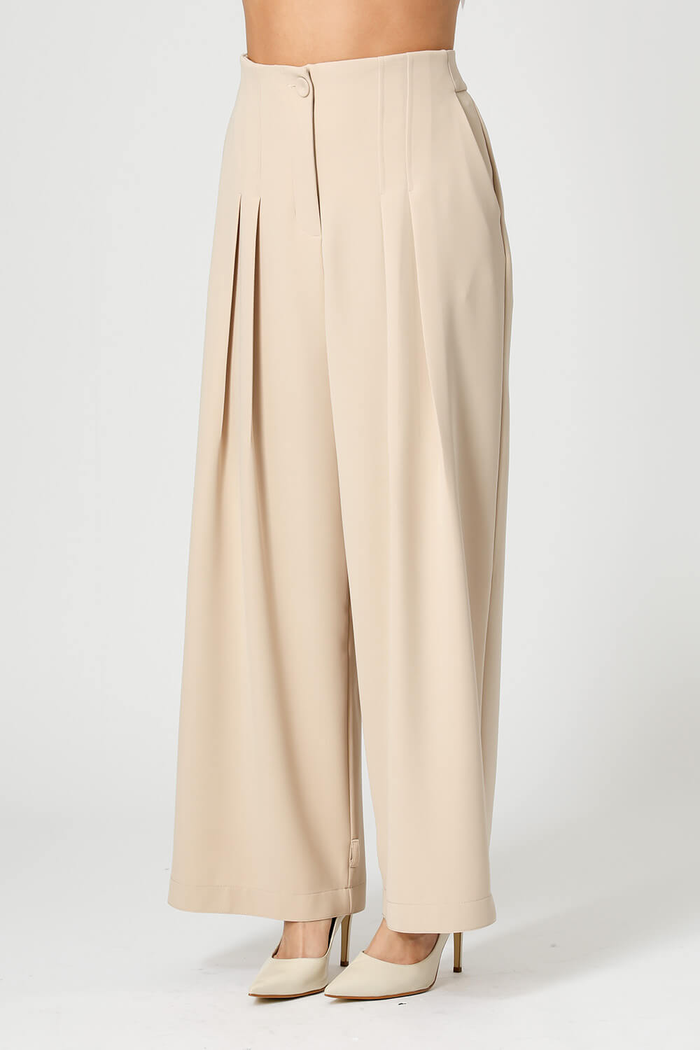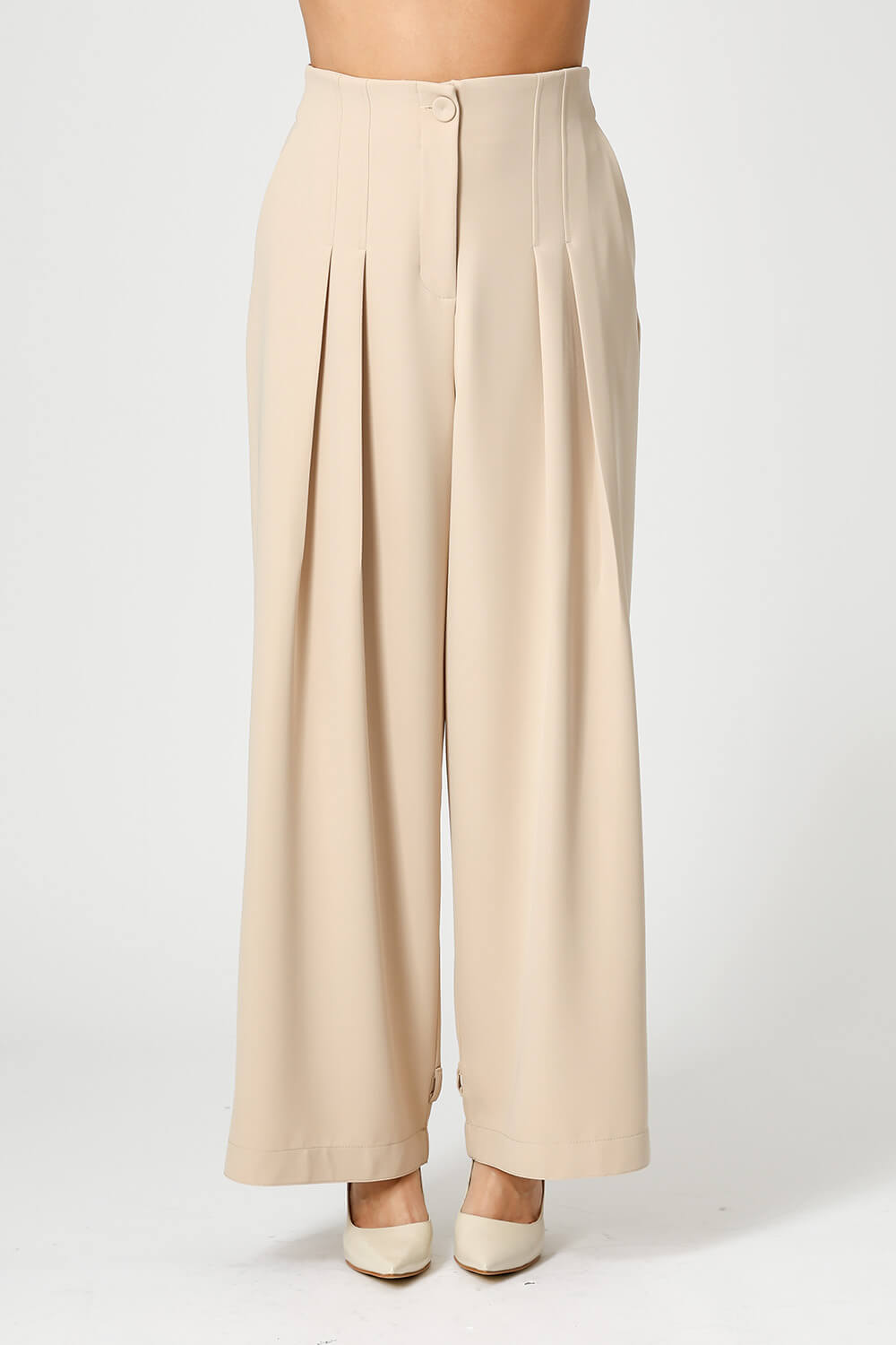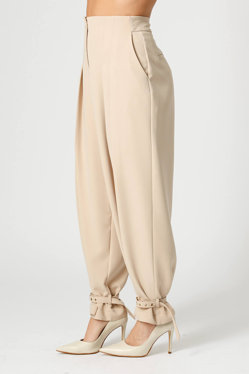 Elegante e versátil, esta calça de alfaiataria possui pregas frontais e cintos removíveis e ajustáveis na barra. Possui pregas nas costas que garantem um caimento perfeito. Feita em tecido alfaiataria fluido, oferece conforto e leveza, ideal para looks formais e casuais.
