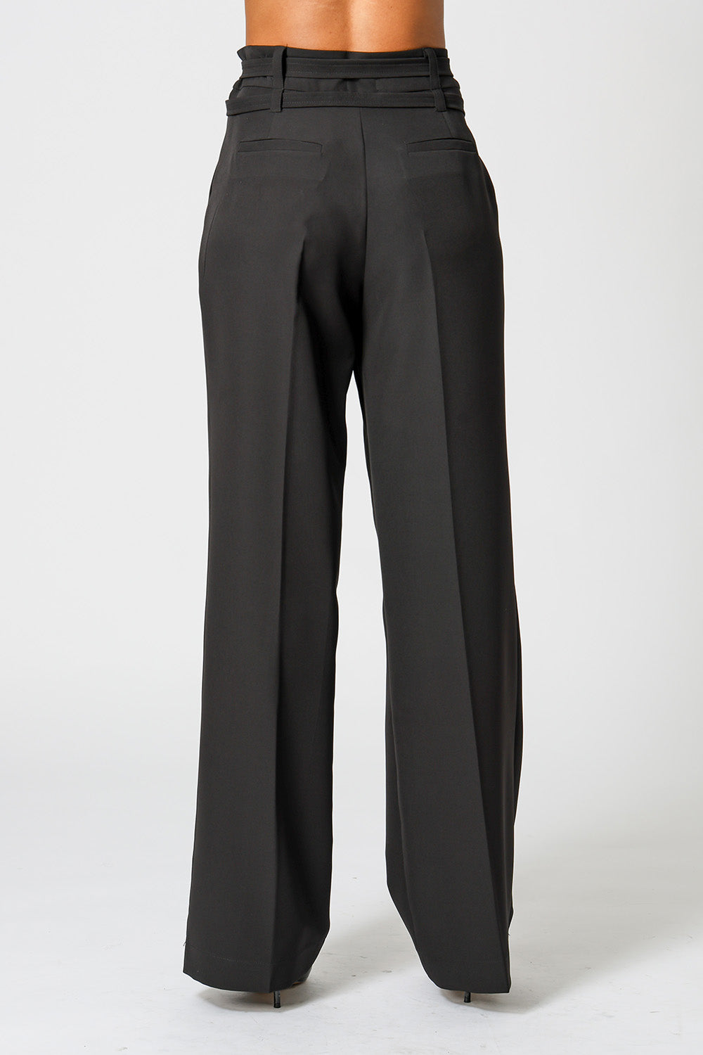 Calça de alfaiataria com pregas frontais e dois cintos removíveis com fivelas distintas. Versátil e elegante, perfeita para compor looks sofisticados com um toque de personalidade.
